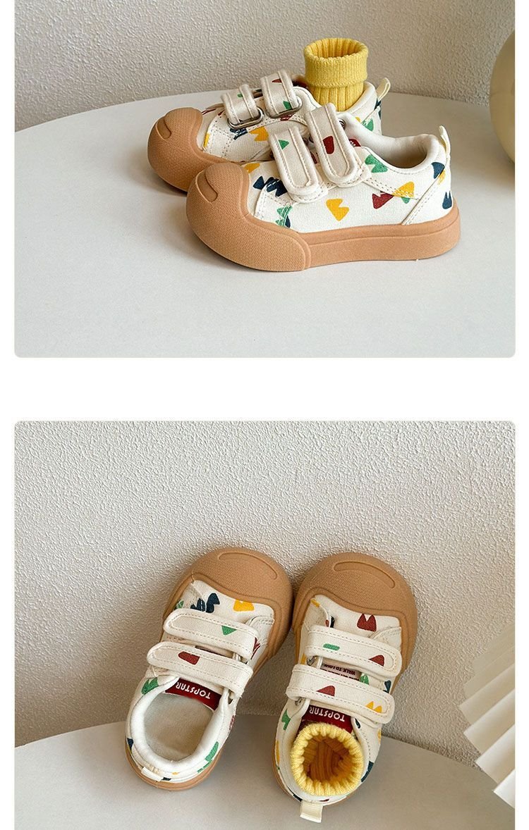 어린이 오픈 입 스마일 캔버스 신발 2025 봄과 가을 소년 소녀를위한 로우 탑 보드 신발 부드러운 밑창 벨크로 베이비 화이트 신발스토어 가기
