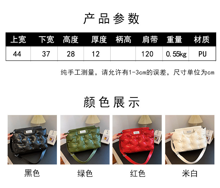 국경 간 다운 백 베개 2025 새로운 공간 면화 캐주얼 핸드백 대용량 여성용 가방 클라우드 크로스 바디 백