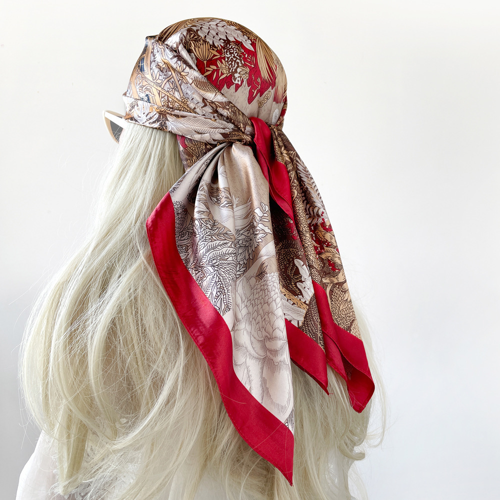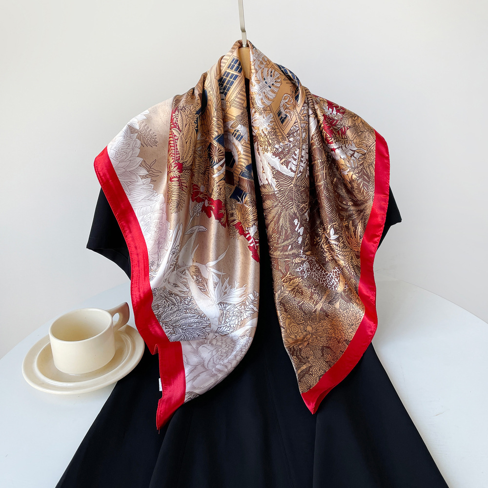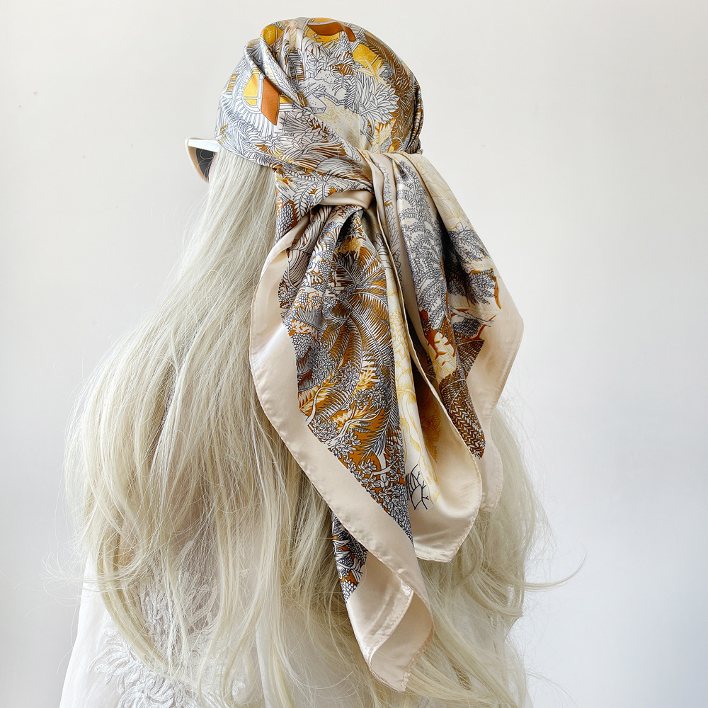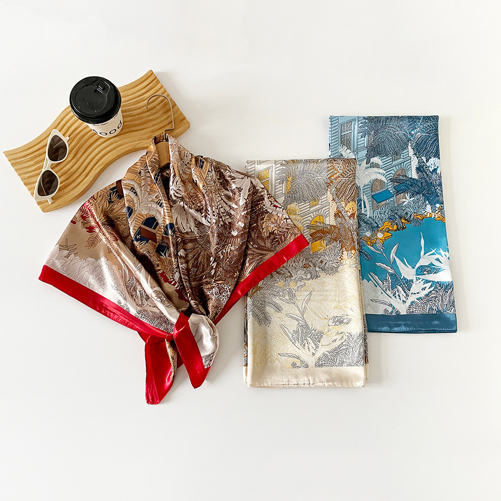 90cm 실크 스카프 큰 사각형 여성 목도리 국경 중동 새로운 인쇄 컬러 스카프 터번 도매