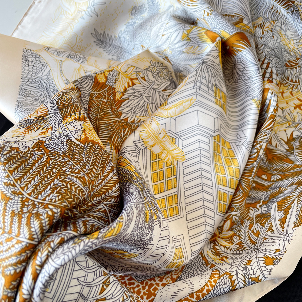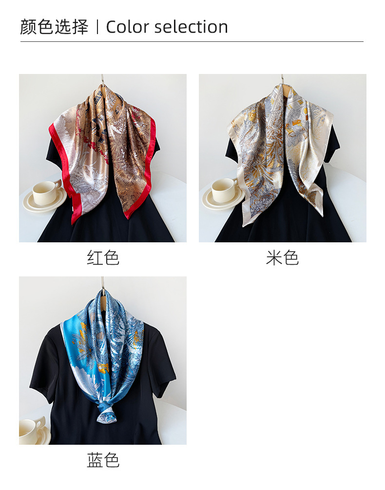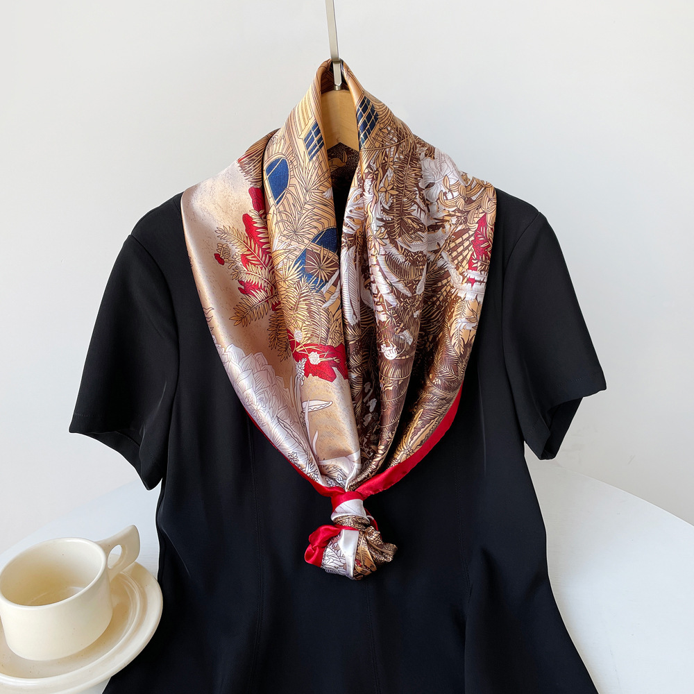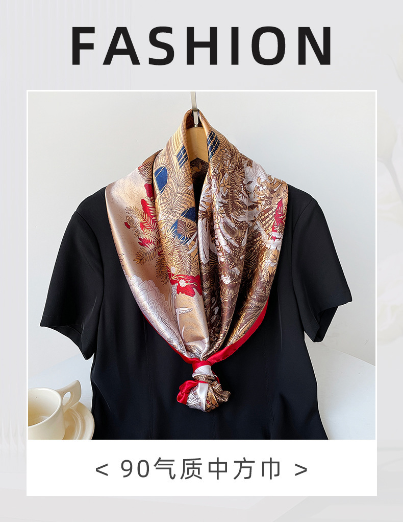 90cm 실크 스카프 큰 사각형 여성 목도리 국경 중동 새로운 인쇄 컬러 스카프 터번 도매