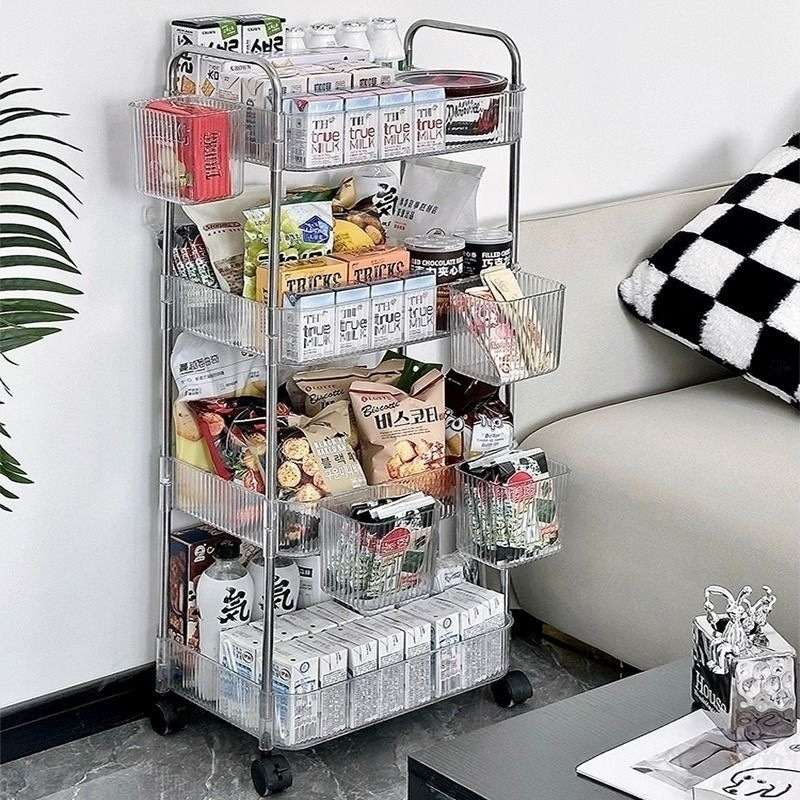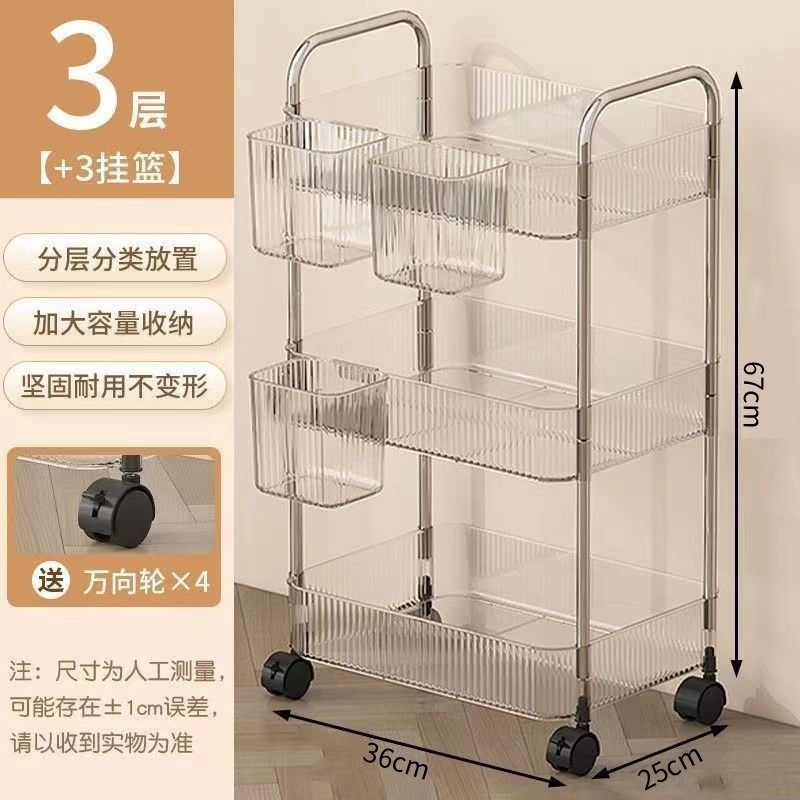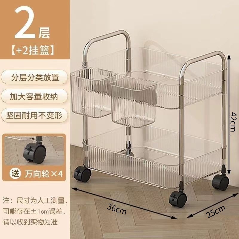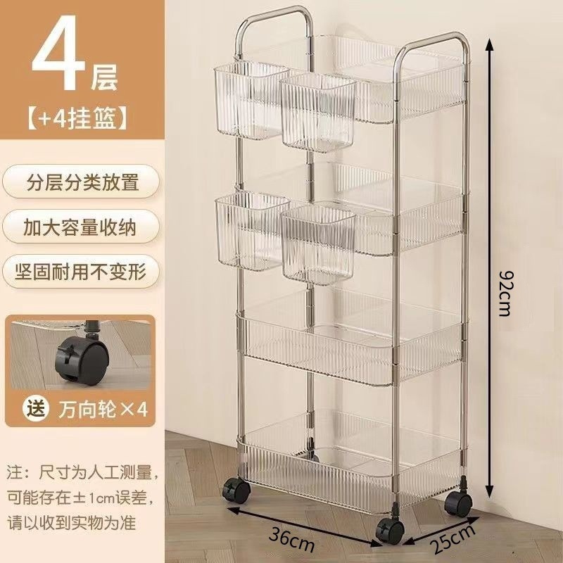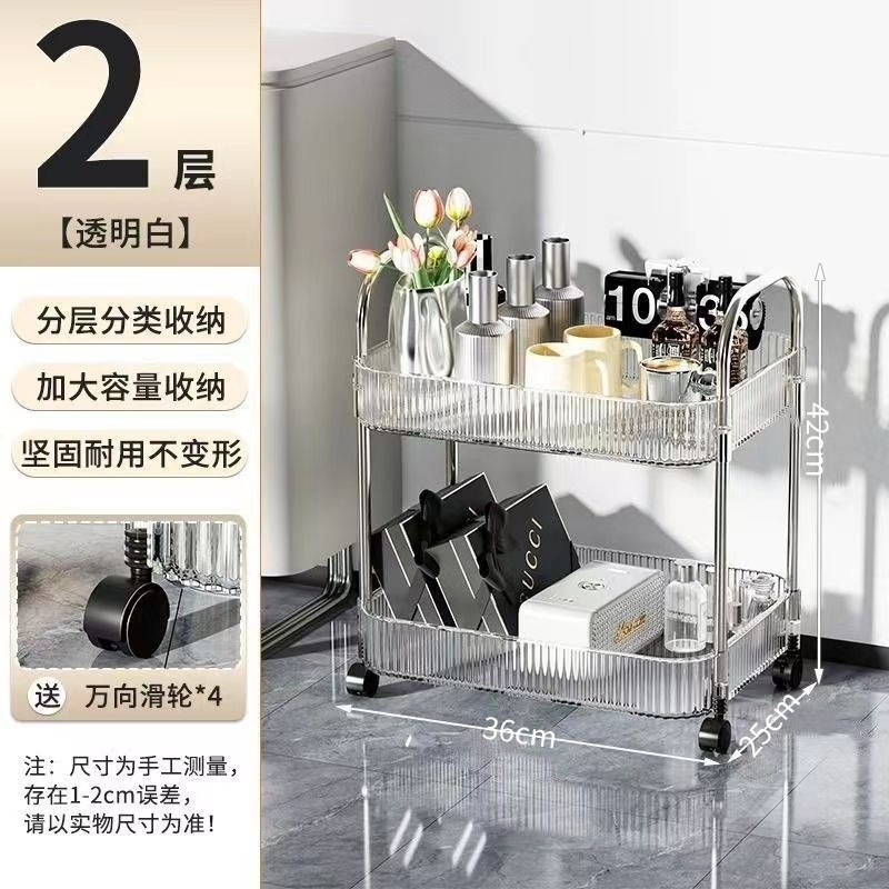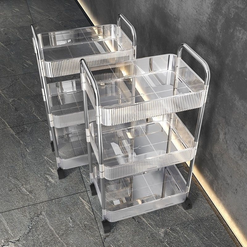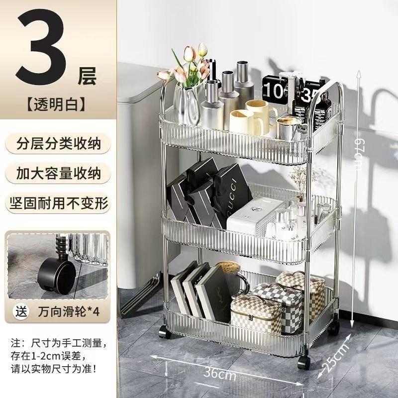 투명한 아크릴 카트 화장품 침대 옆 카트 책장 거실 저장 상자 욕실 모바일 스토리지 랙