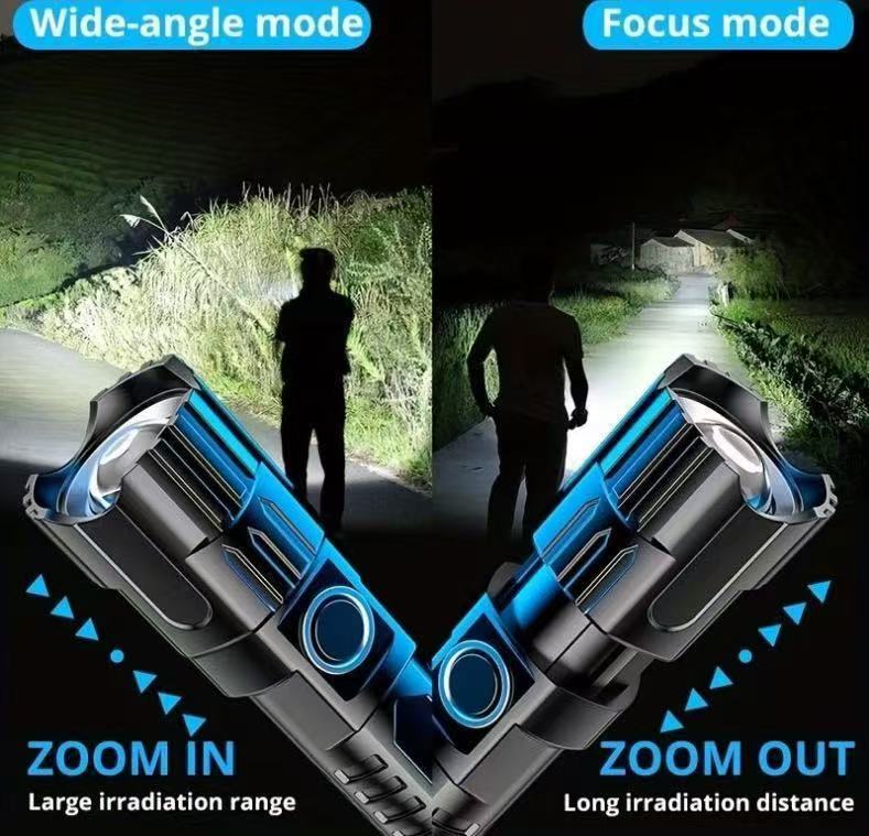 새로운 줌 강한 빛 손전등 충전식 USB 홈 야외 조명 오래 지속되는 배터리 수명 슈퍼 밝은 손전등