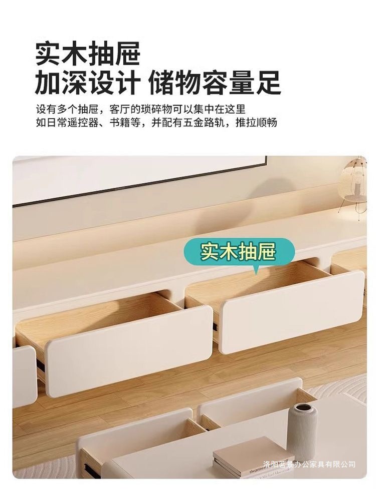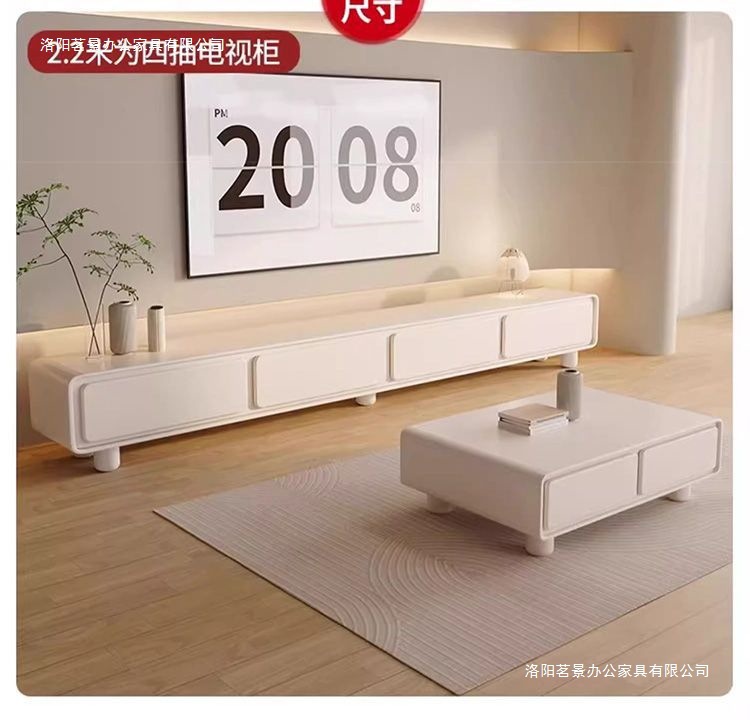 크림 스타일 TV 캐비닛 커피 테이블 조합 거실 가구 현대 Minme 스타일 작은 아파트 둥근 TV 캐비닛스토어 가기