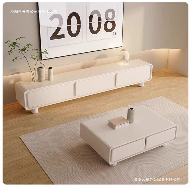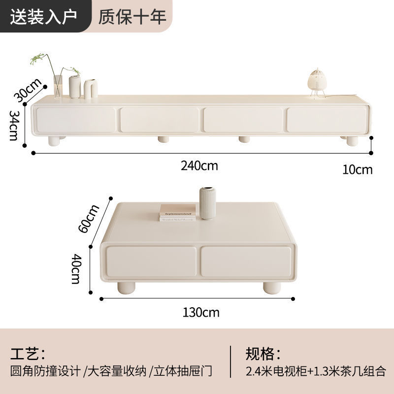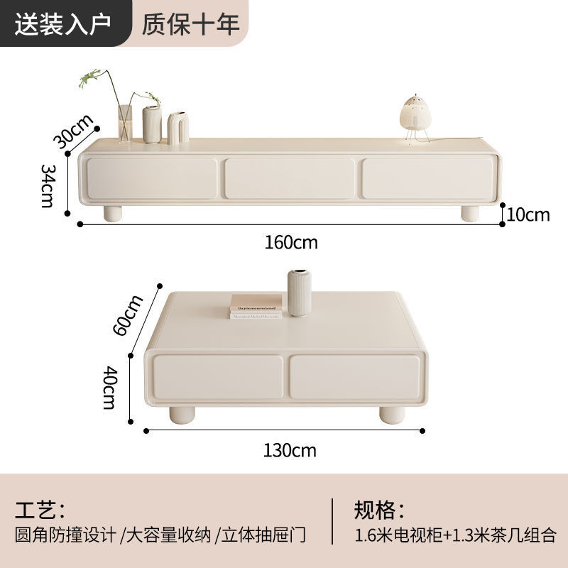 크림 스타일 TV 캐비닛 커피 테이블 조합 거실 가구 현대 Minme 스타일 작은 아파트 둥근 TV 캐비닛