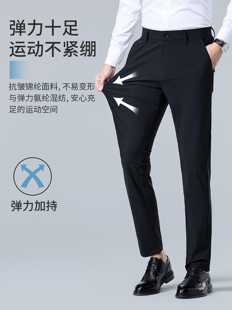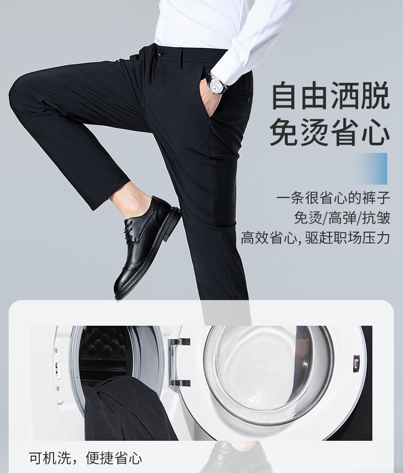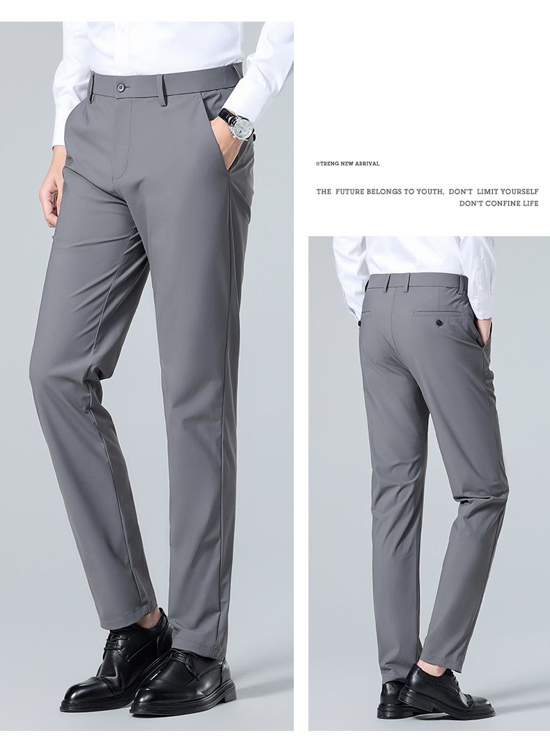 [비 다림질 4 면 샷건] 남성용 아이스 실크 캐주얼 바지 봄 · 여름 신사업 바지 작업복 쿨 스트레이트 바지