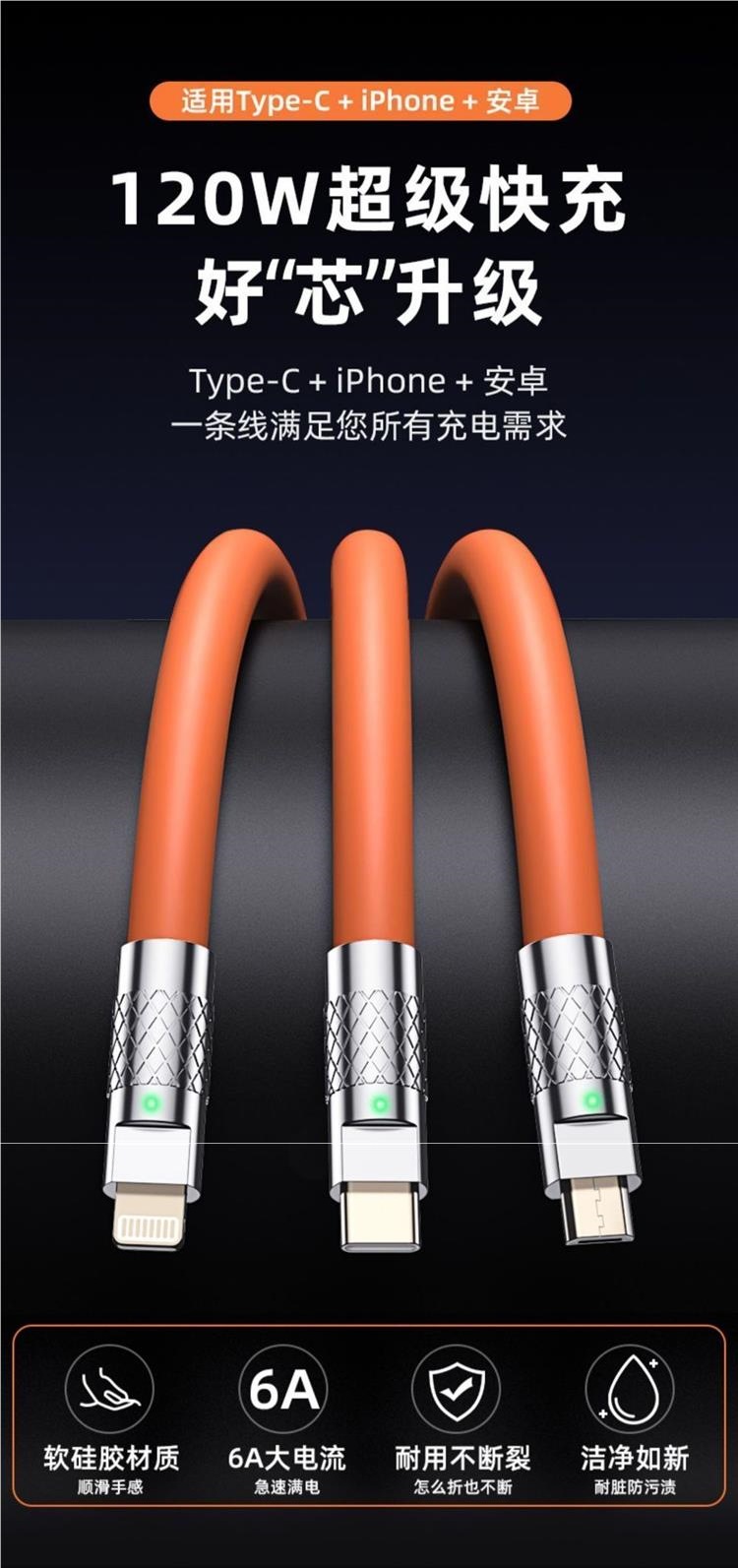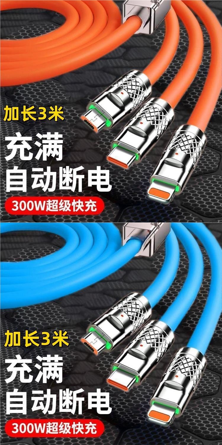 Apple에 적합한 확장 3m 데이터 케이블 3-in-1 충전 케이블 1-3 120W 초고속 충전기 게스트 케이블
