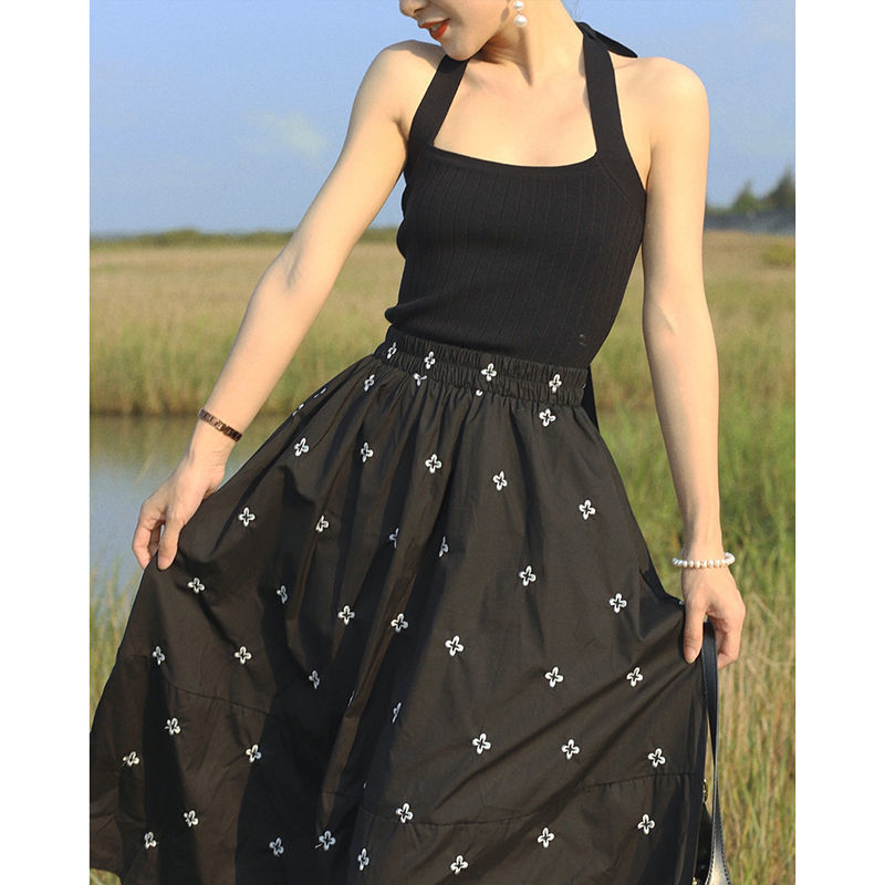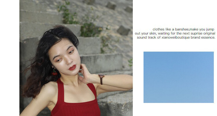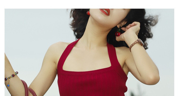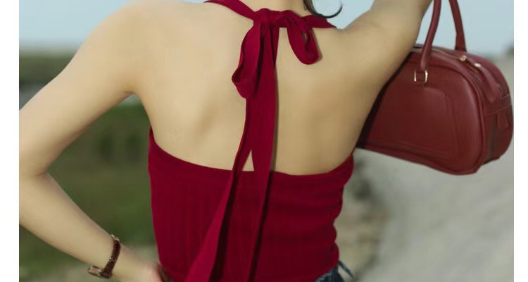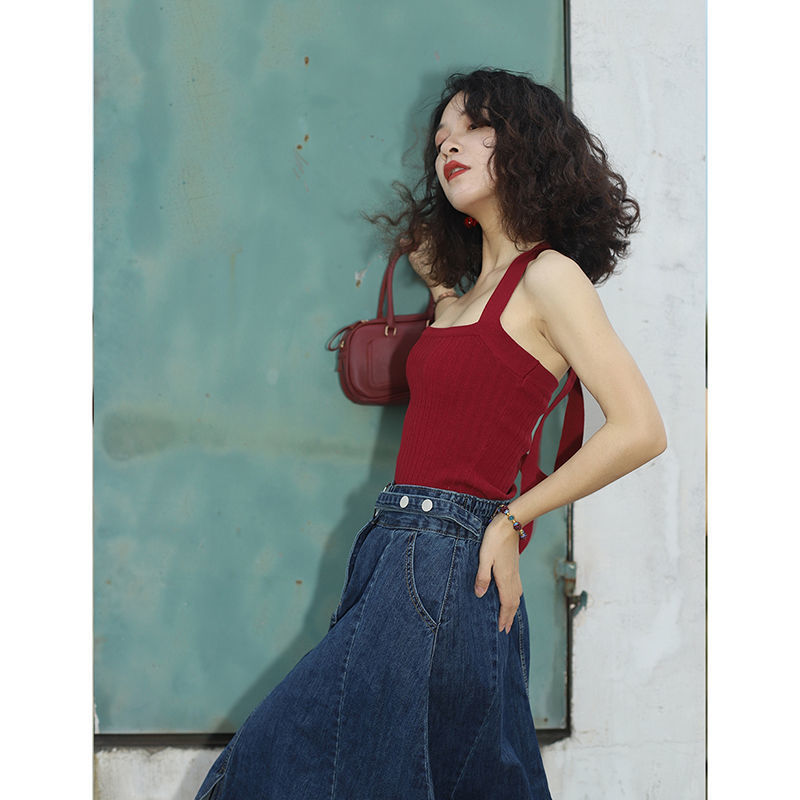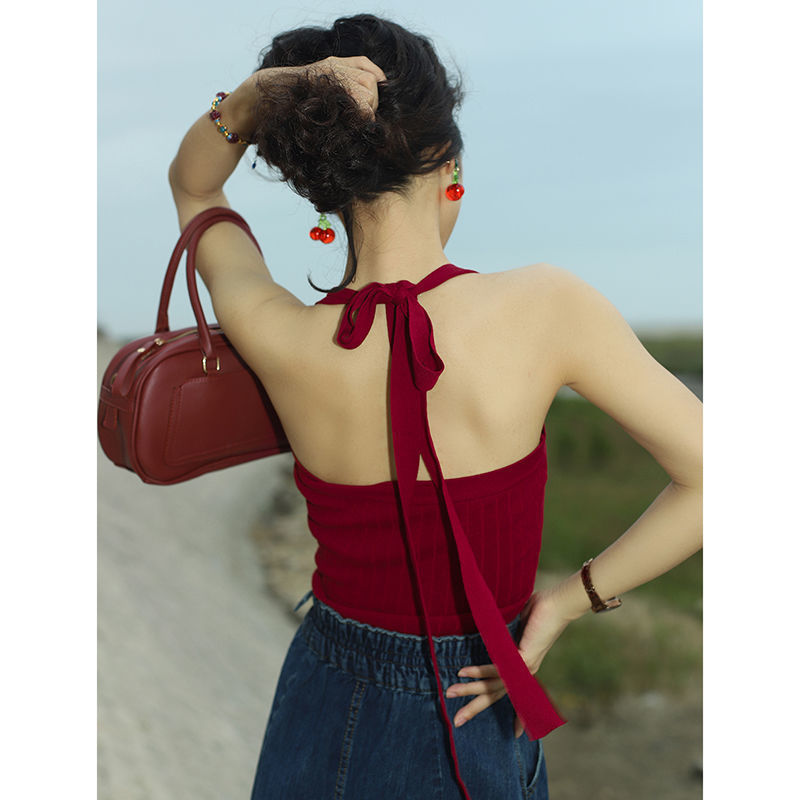 빈티지 홍콩 스타일 붉은 목 스트랩 조끼 여성 외부 착용 디자인 틈새 여름 니트 슬링베이스 탑스토어 가기