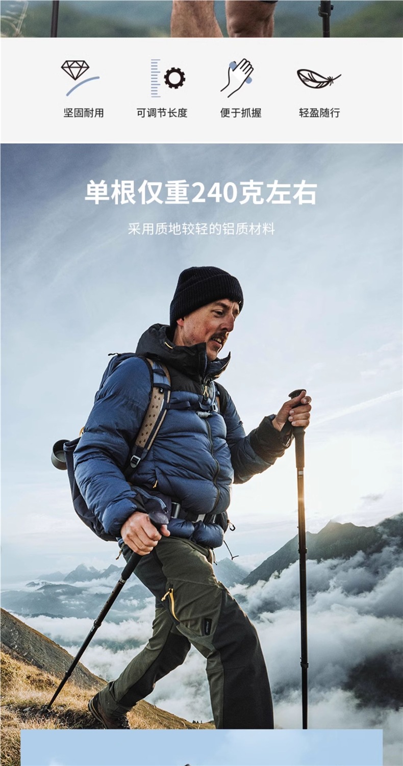 유유 하이킹 스틱 야외 등반 장비 노인 난간 라이트 워킹 스틱 ODAB를 위한 망원경 하이킹 장비