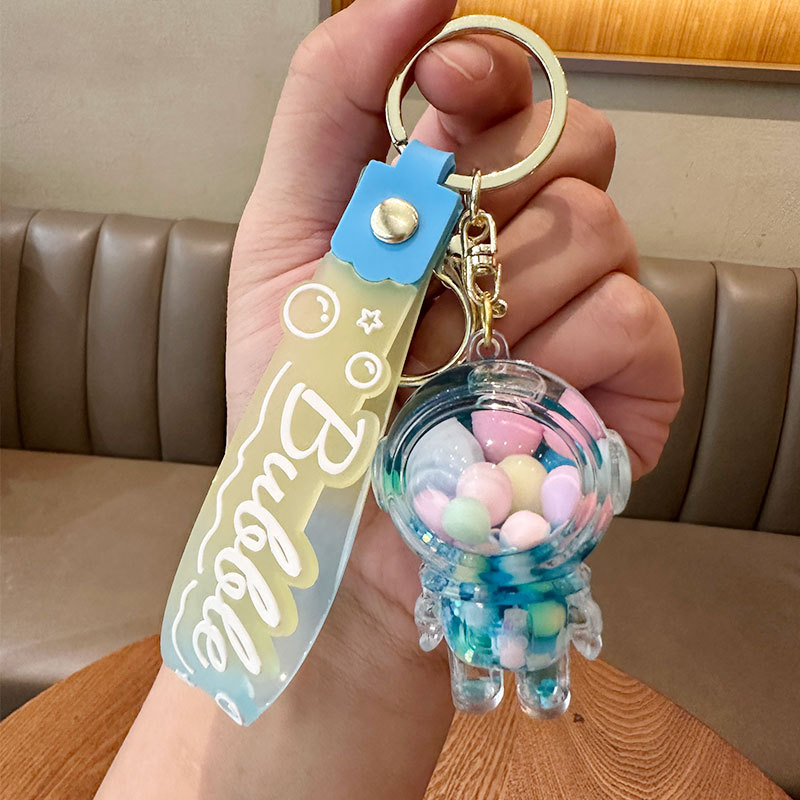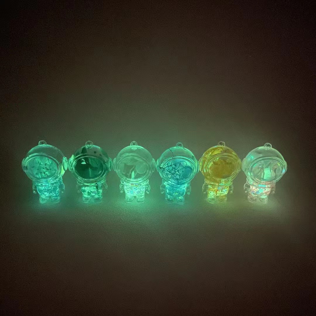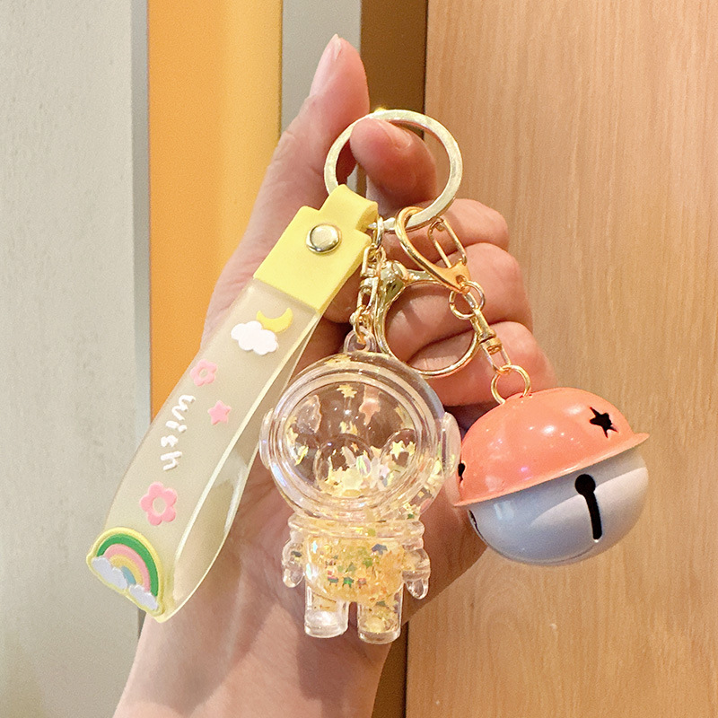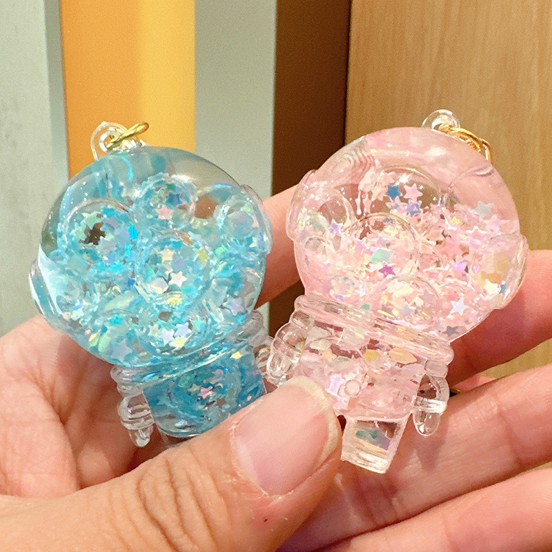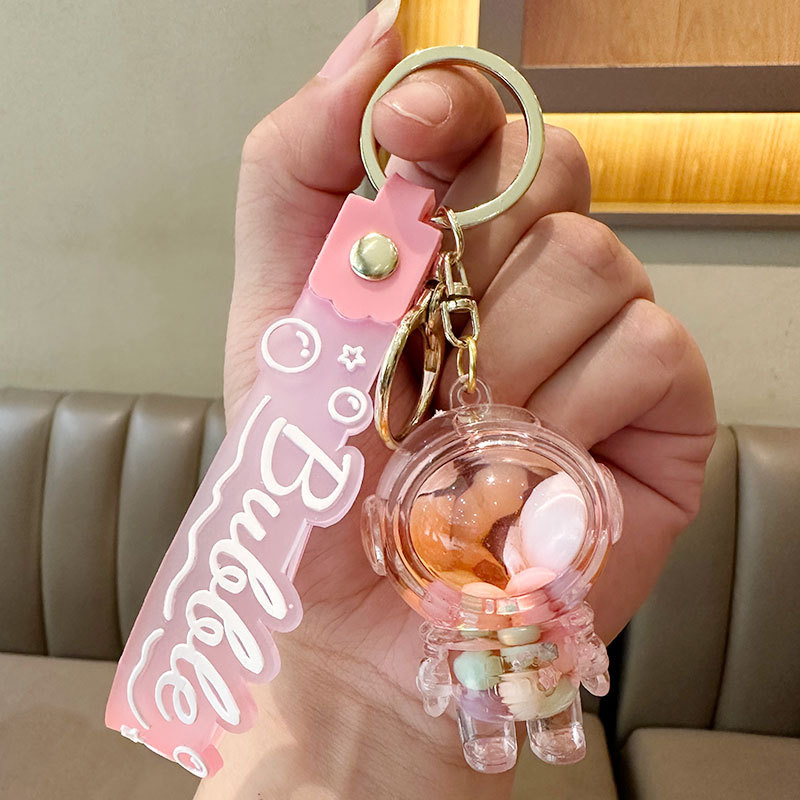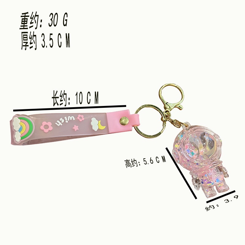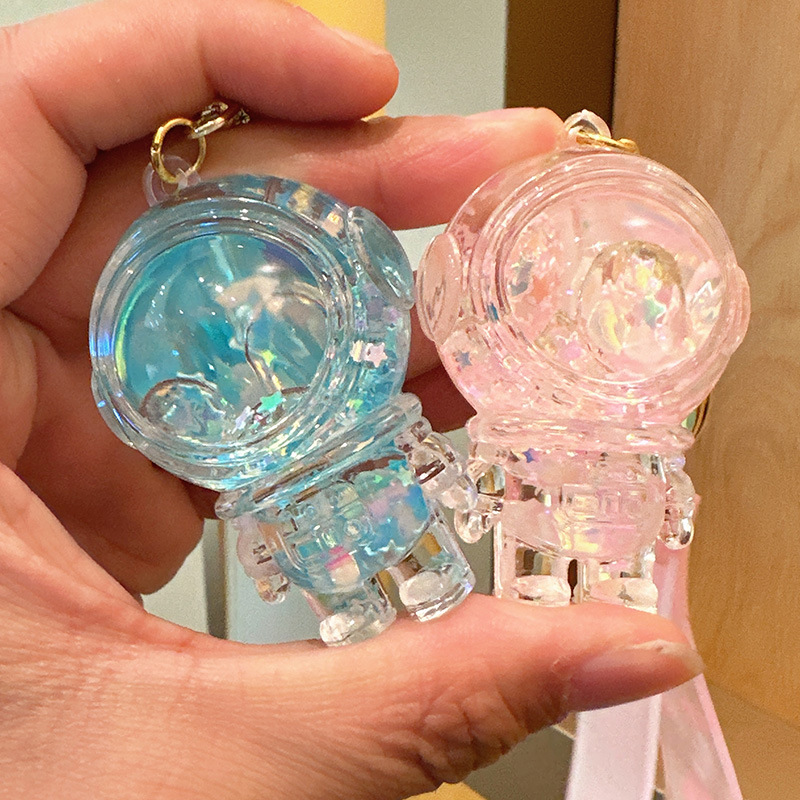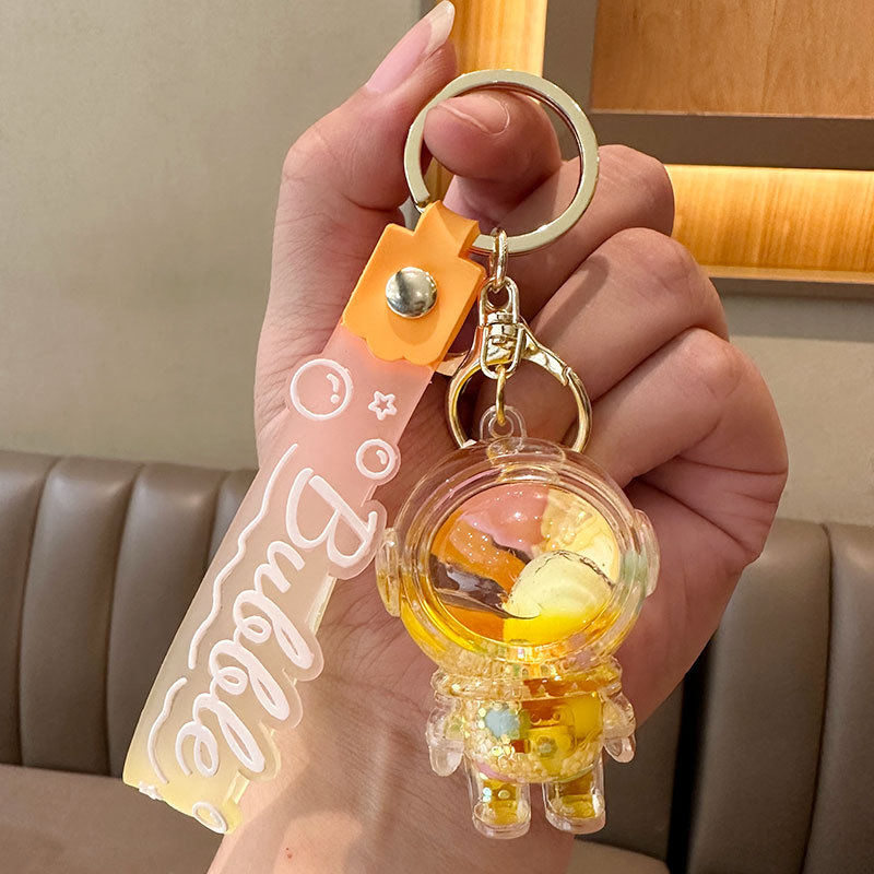 사이버 유명한 퀵 샌드 병 빛나는 우주 비행사 귀여운 펜던트 펜던트 오일 키 체인 자동차 학교 가방 인형스토어 가기