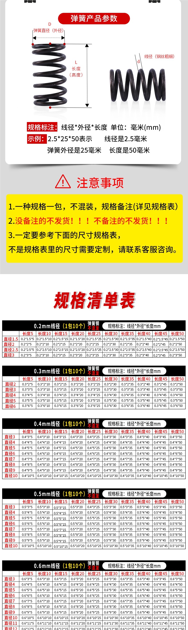 봄 강철 크기 압축 스프링 밸브 코어 진동 스크린 높은 반환 힘 버퍼 충격 흡수 하드웨어 액세서리 와이어 직경 두께스토어 가기