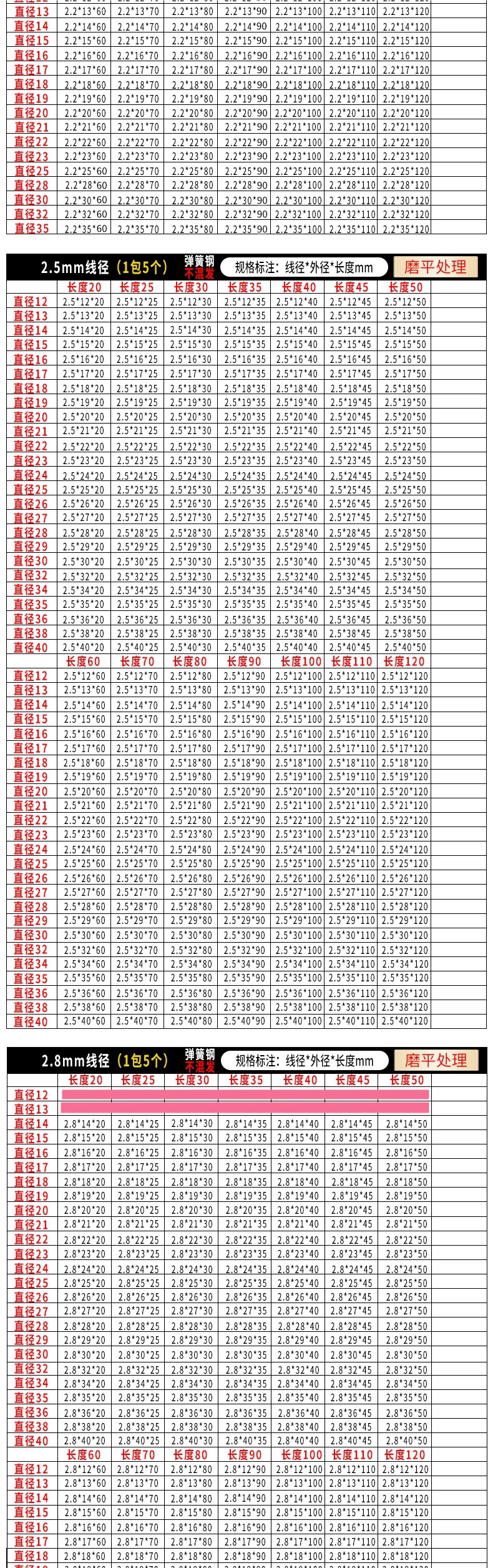 • 와이어 직경 2.2mm, 길이 15-50〓5개