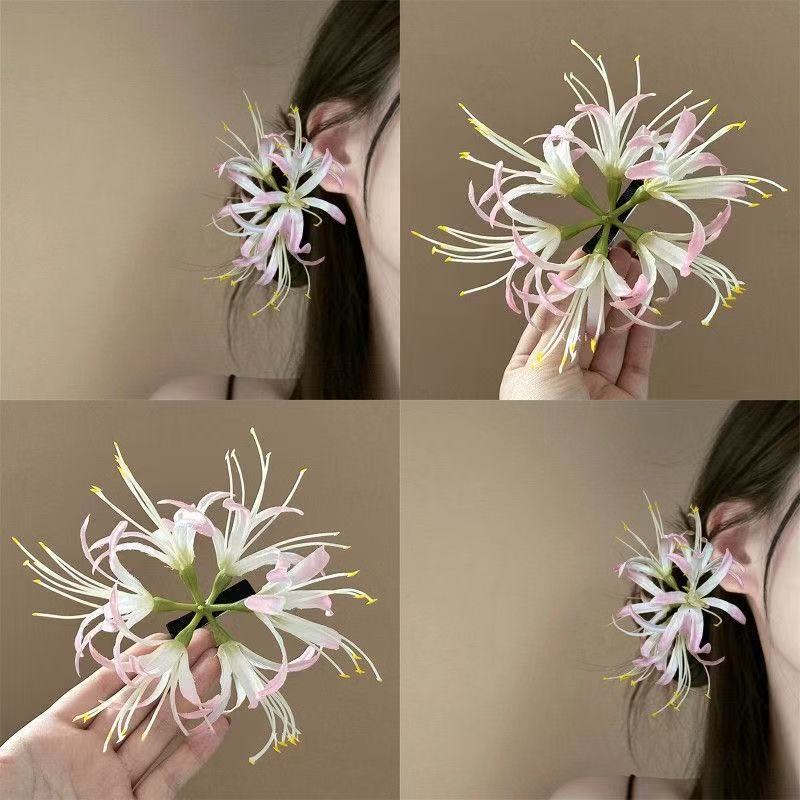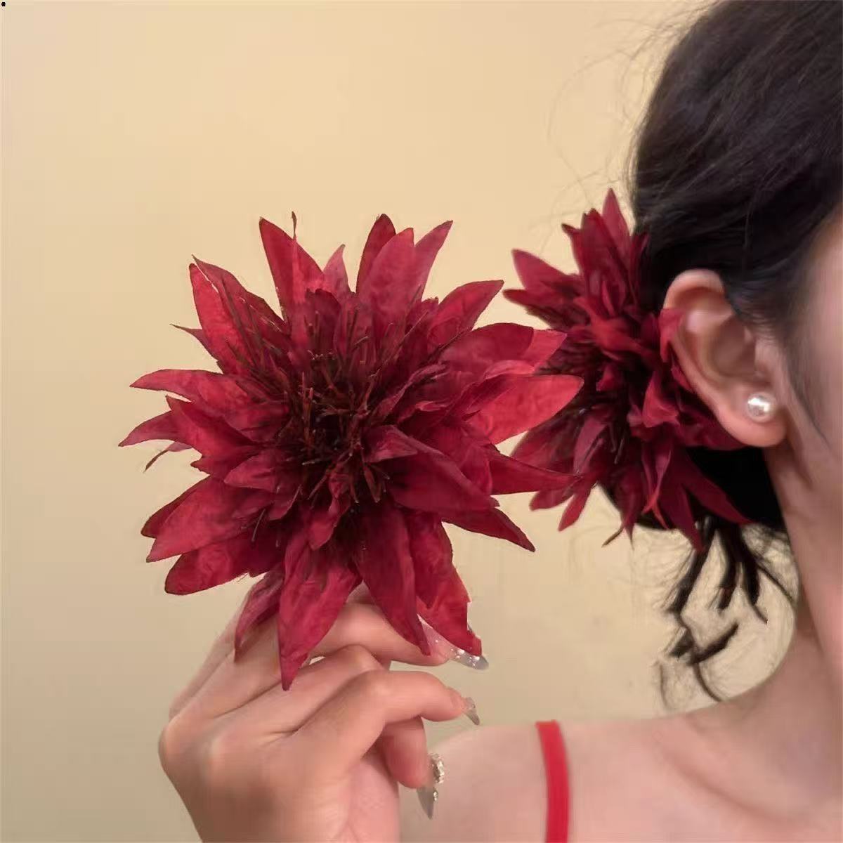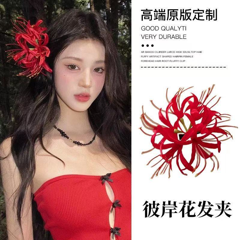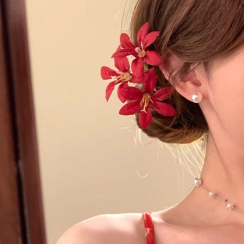 • 5816 섬세한 붉은 꽃 술 머리핀