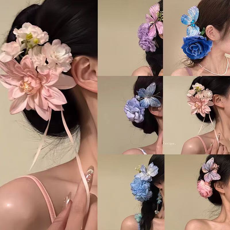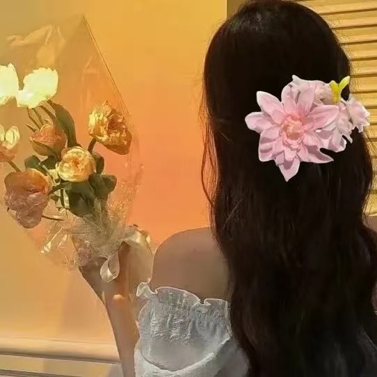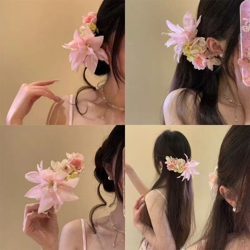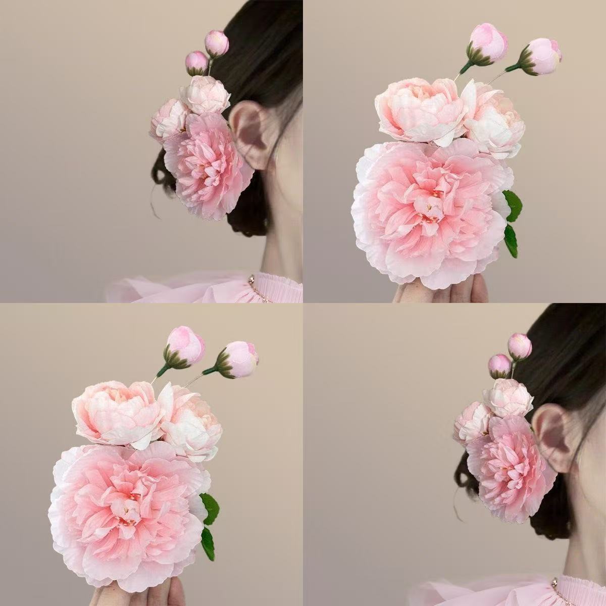 새로운 중국 스타일 부드러운 핑크 꽃 머리핀 복고풍 볼 머리핀 꽃 클립 분위기 사진 헤어 액세서리스토어 가기
