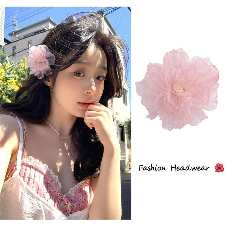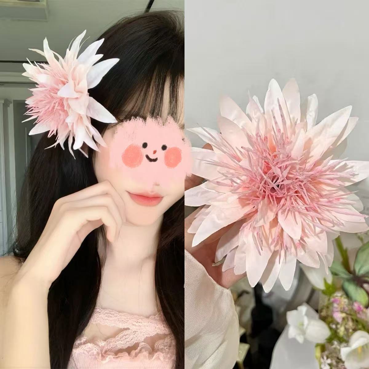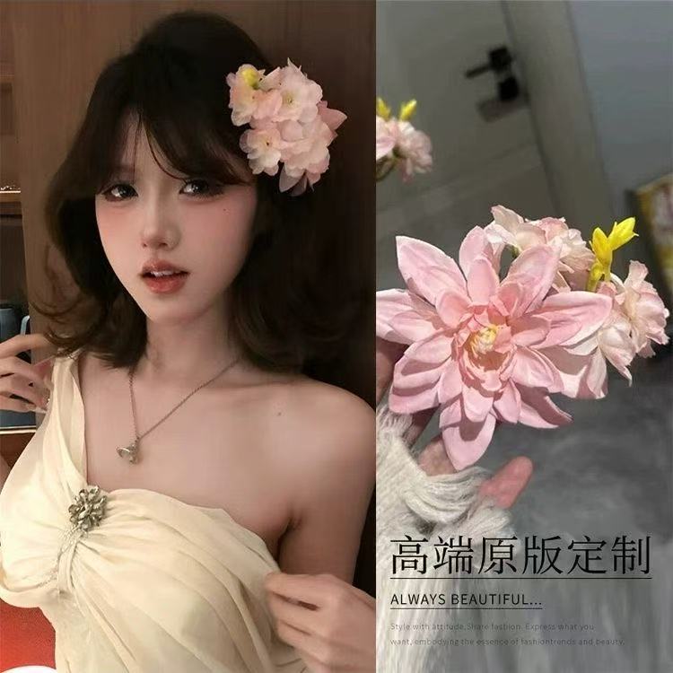 새로운 중국 스타일 부드러운 핑크 꽃 머리핀 복고풍 볼 머리핀 꽃 클립 분위기 사진 헤어 액세서리