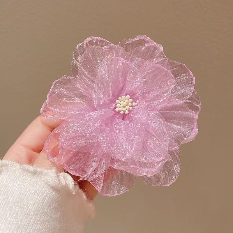 • 5666 번트엣지 쉬폰 플라워 클립-핑크