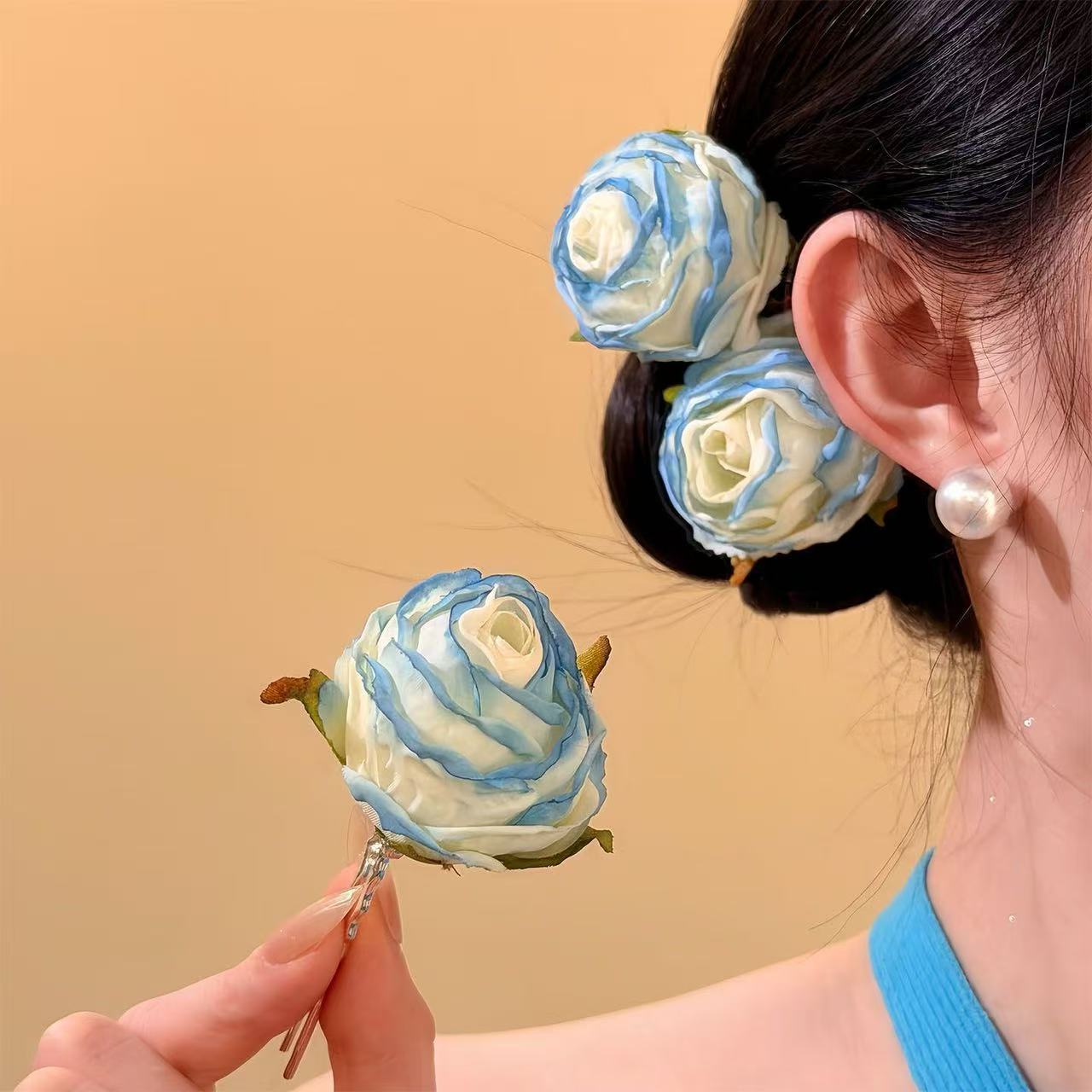 • 7333 로스티드 엣지 로즈 헤어핀-블루