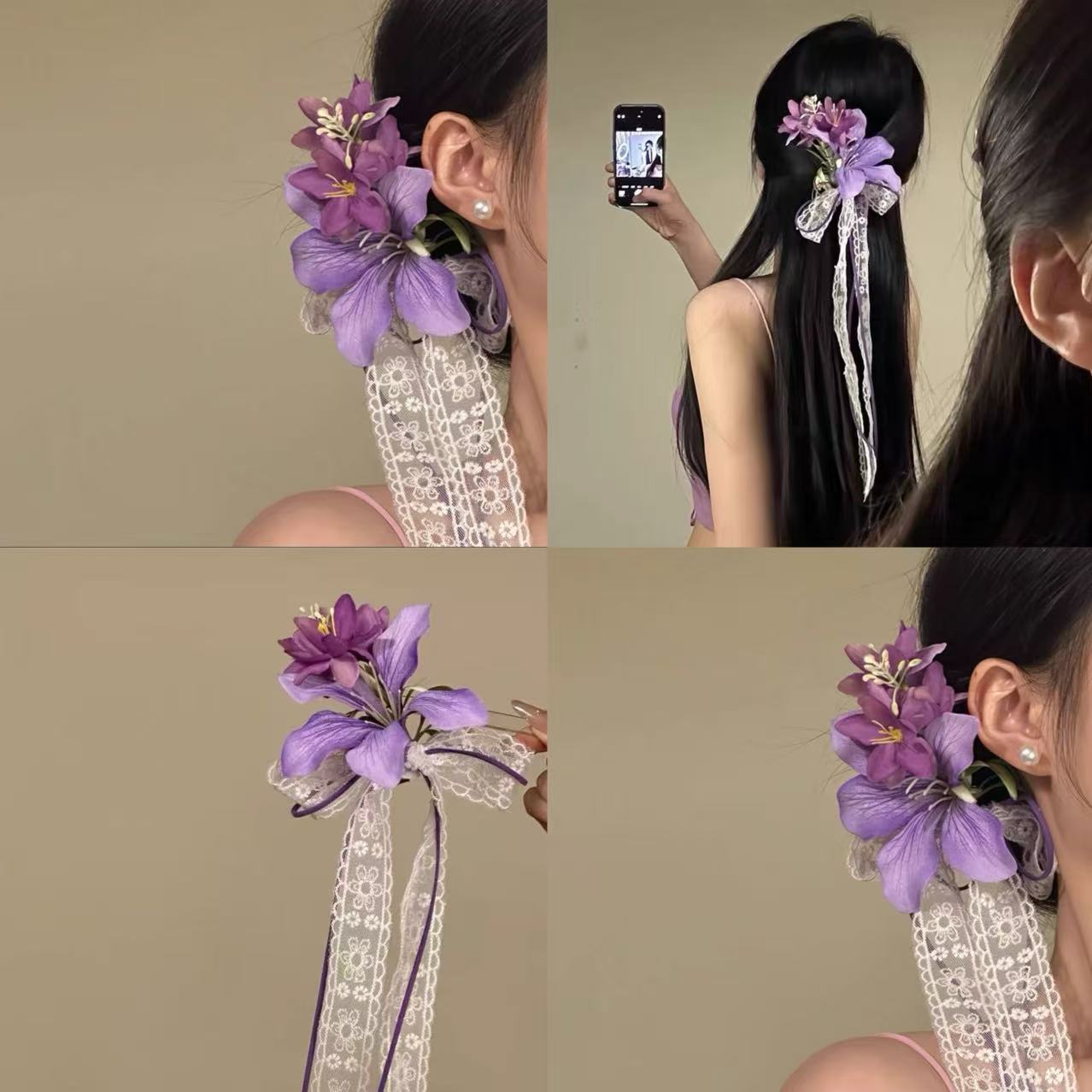 • 5943 보라색 꽃 바다 리본 머리핀