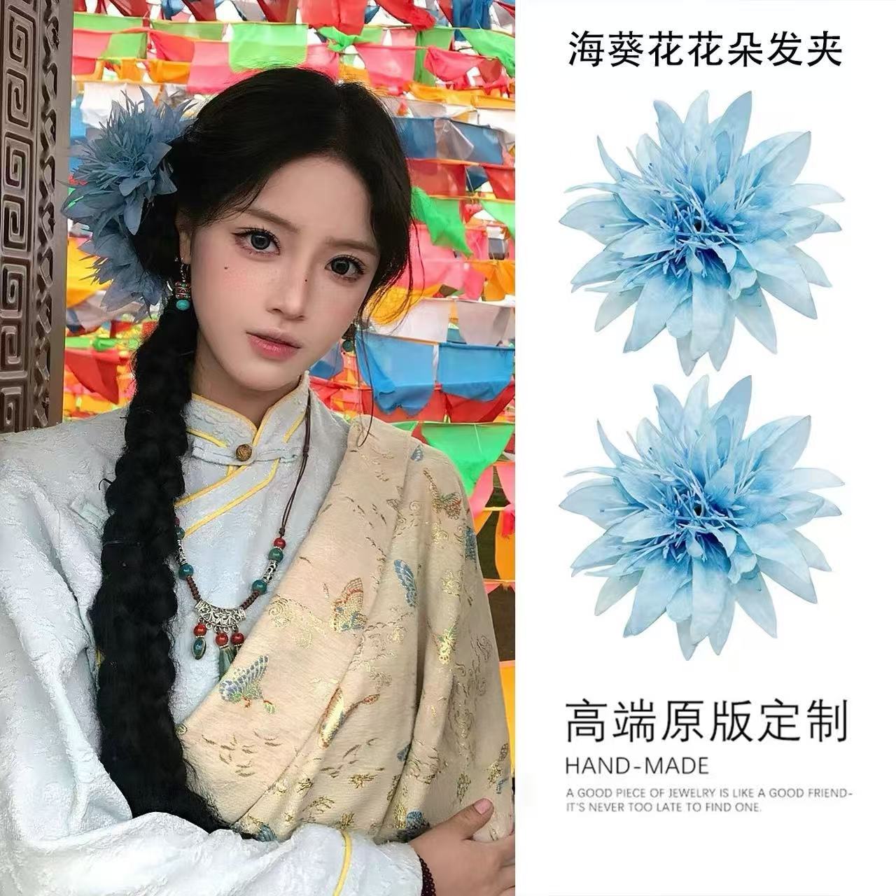 • 5601 히비스커스 꽃 머리핀-블루