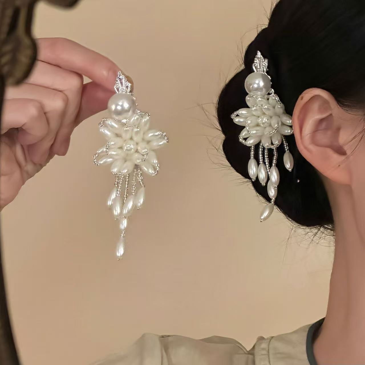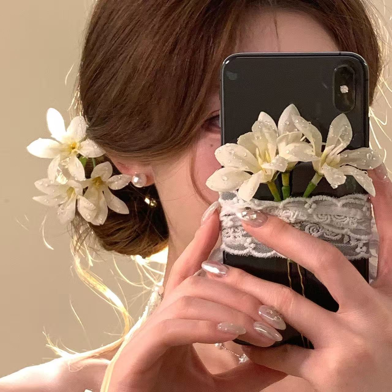 • 7315 단일 다발 이슬꽃 비녀 - 베이지