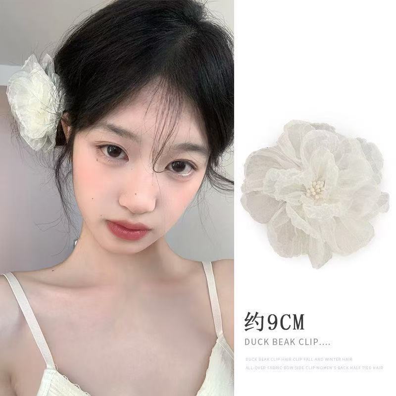 • 5666 번트엣지 쉬폰 플라워 클립-베이지