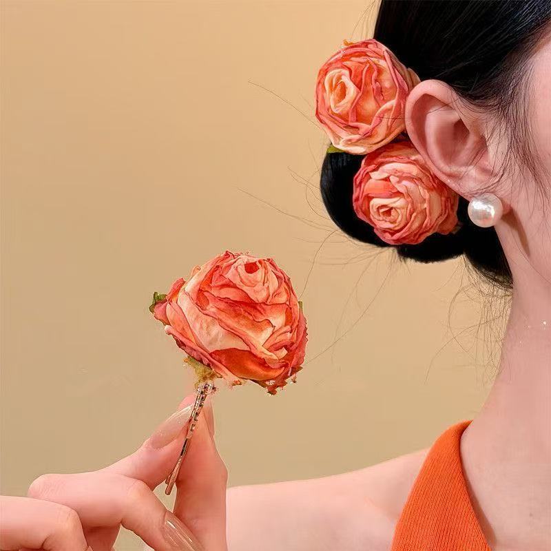 • 7333 로스티드 엣지 로즈 헤어핀-오렌지