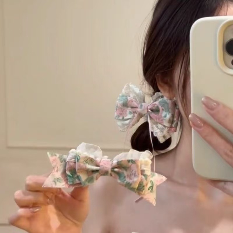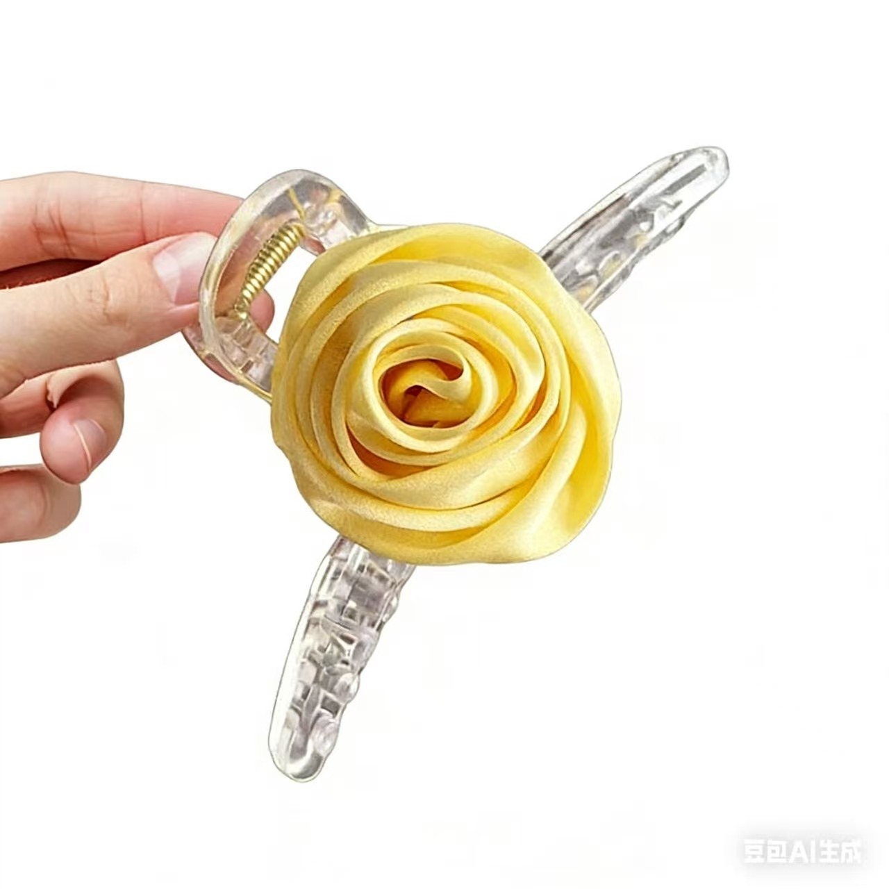 • 5771 노란 장미 헤어 액세서리 - 리본 스프링 헤어 클립