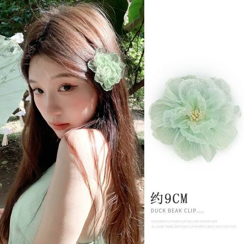 • 5666 번트엣지 쉬폰 플라워 클립-그린