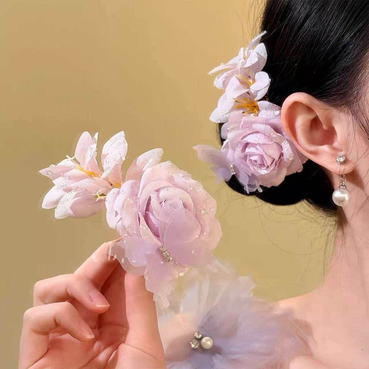 • 5982 매력적인 보라색 장미 머리핀