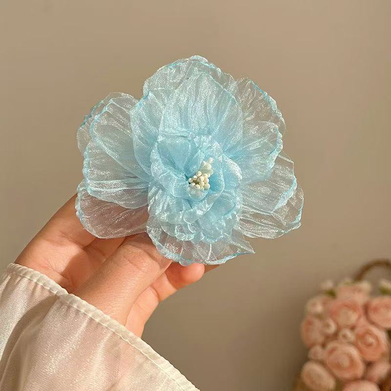• 5666 번트엣지 쉬폰 플라워 클립-블루