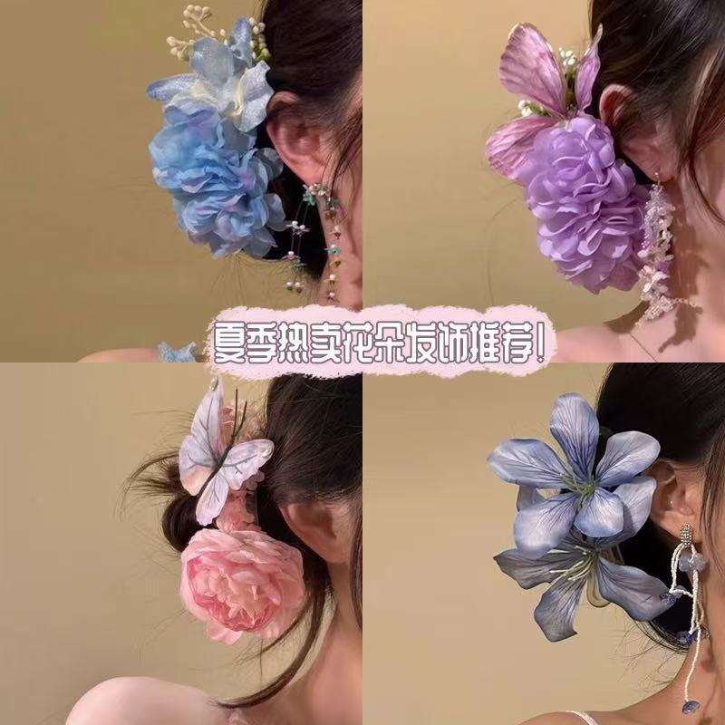 • 5944 보라색 수국 나비 머리핀