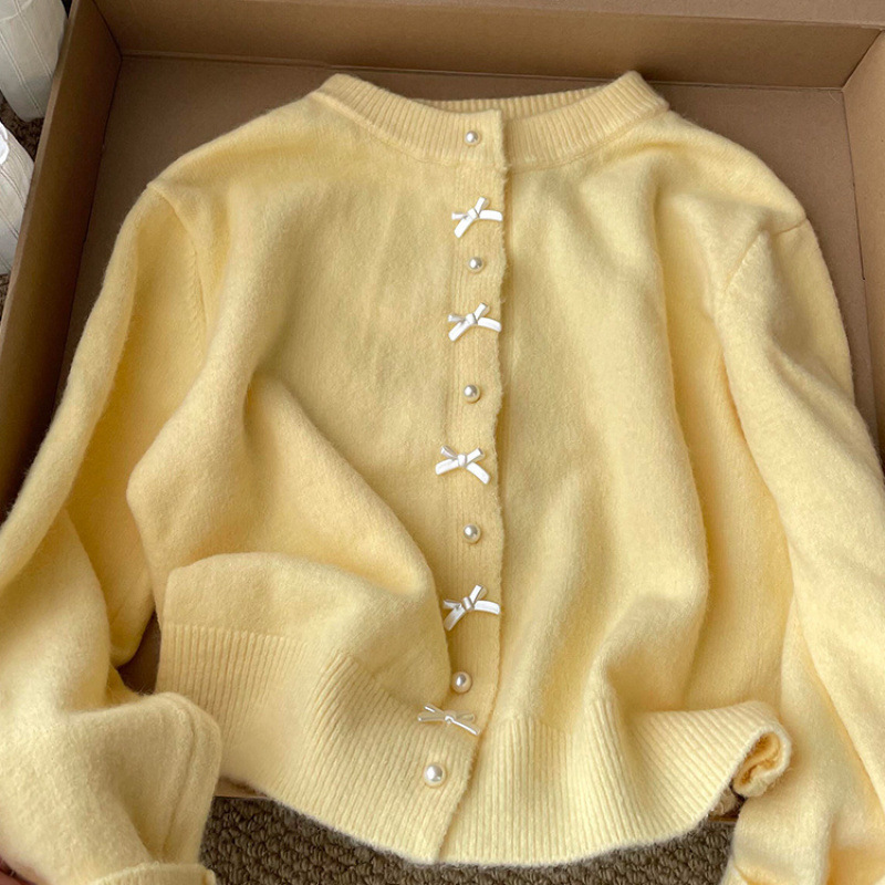 추천! 고급 거위 노란색 스웨터 여성용 가을 2024 새로운 긴 소매 카디건 탑