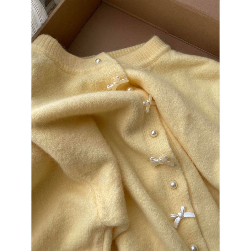추천! 고급 거위 노란색 스웨터 여성용 가을 2024 새로운 긴 소매 카디건 탑스토어 가기