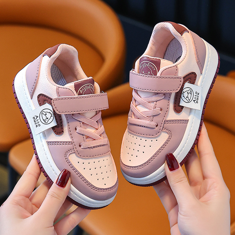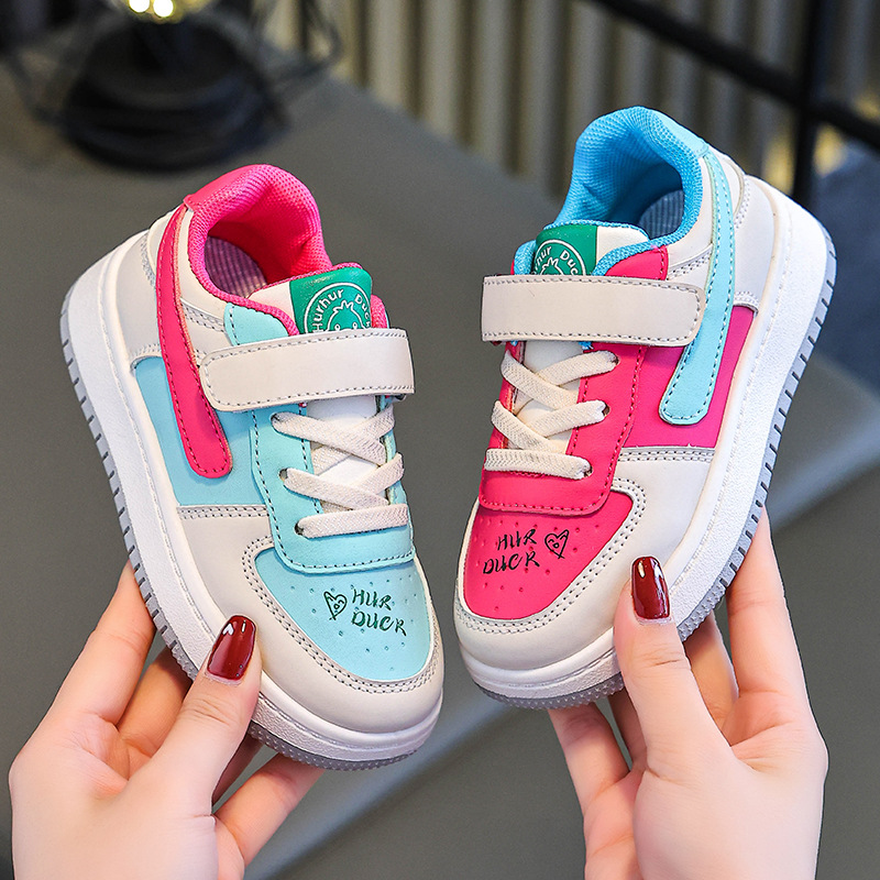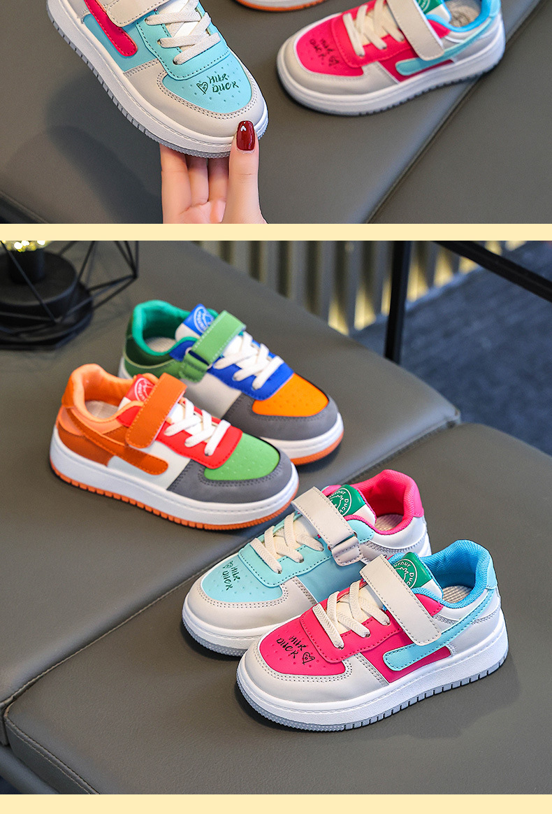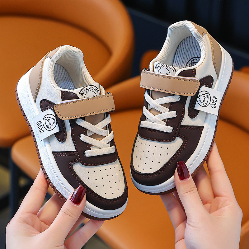 Huahua Little Yellow Duck 어린이 학생 남성과 여성을위한 로우 톱 보드 신발 및 큰 어린이 캐주얼 스포츠 가죽 레이스 업 만다린 오리 컬러 매칭 트렌디스토어 가기