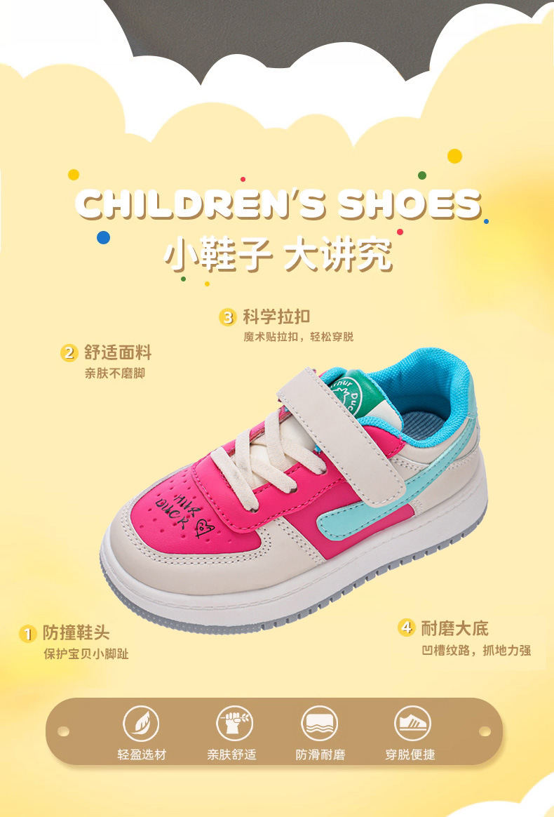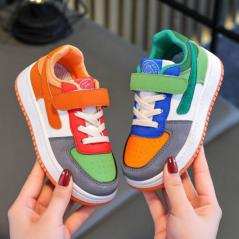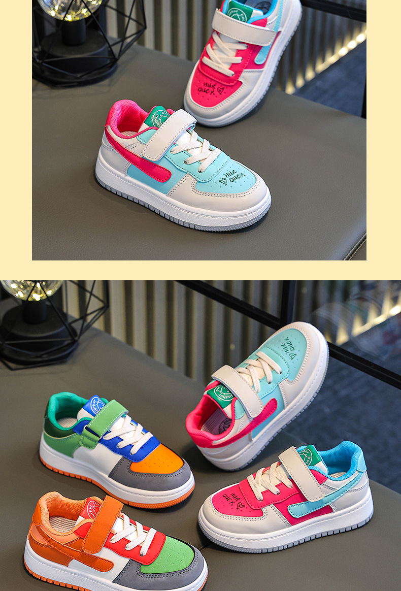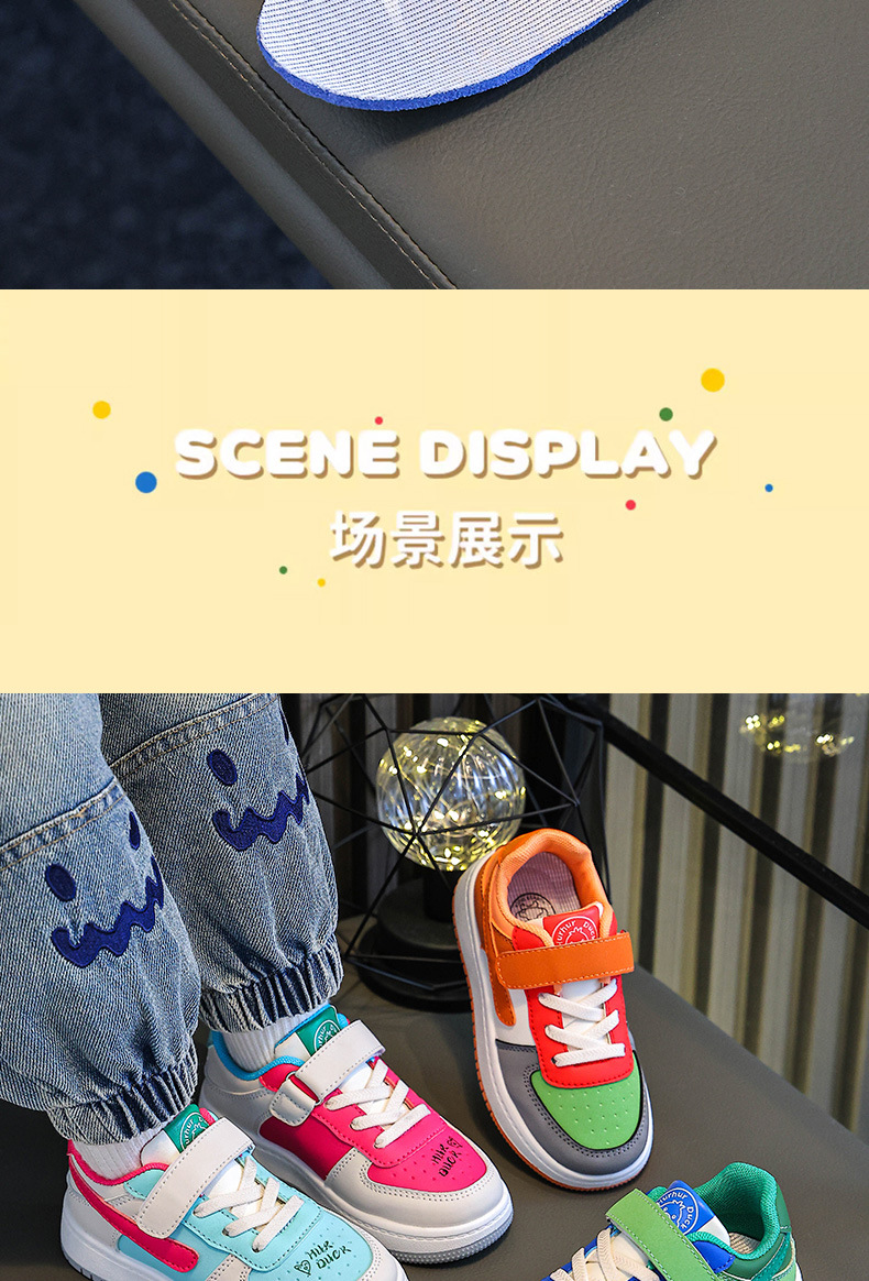Huahua Little Yellow Duck 어린이 학생 남성과 여성을위한 로우 톱 보드 신발 및 큰 어린이 캐주얼 스포츠 가죽 레이스 업 만다린 오리 컬러 매칭 트렌디스토어 가기