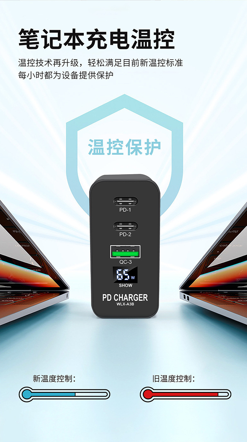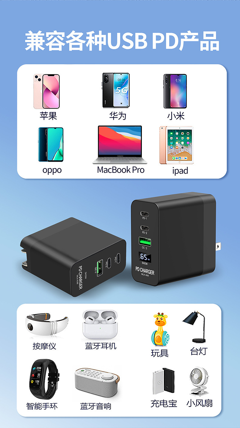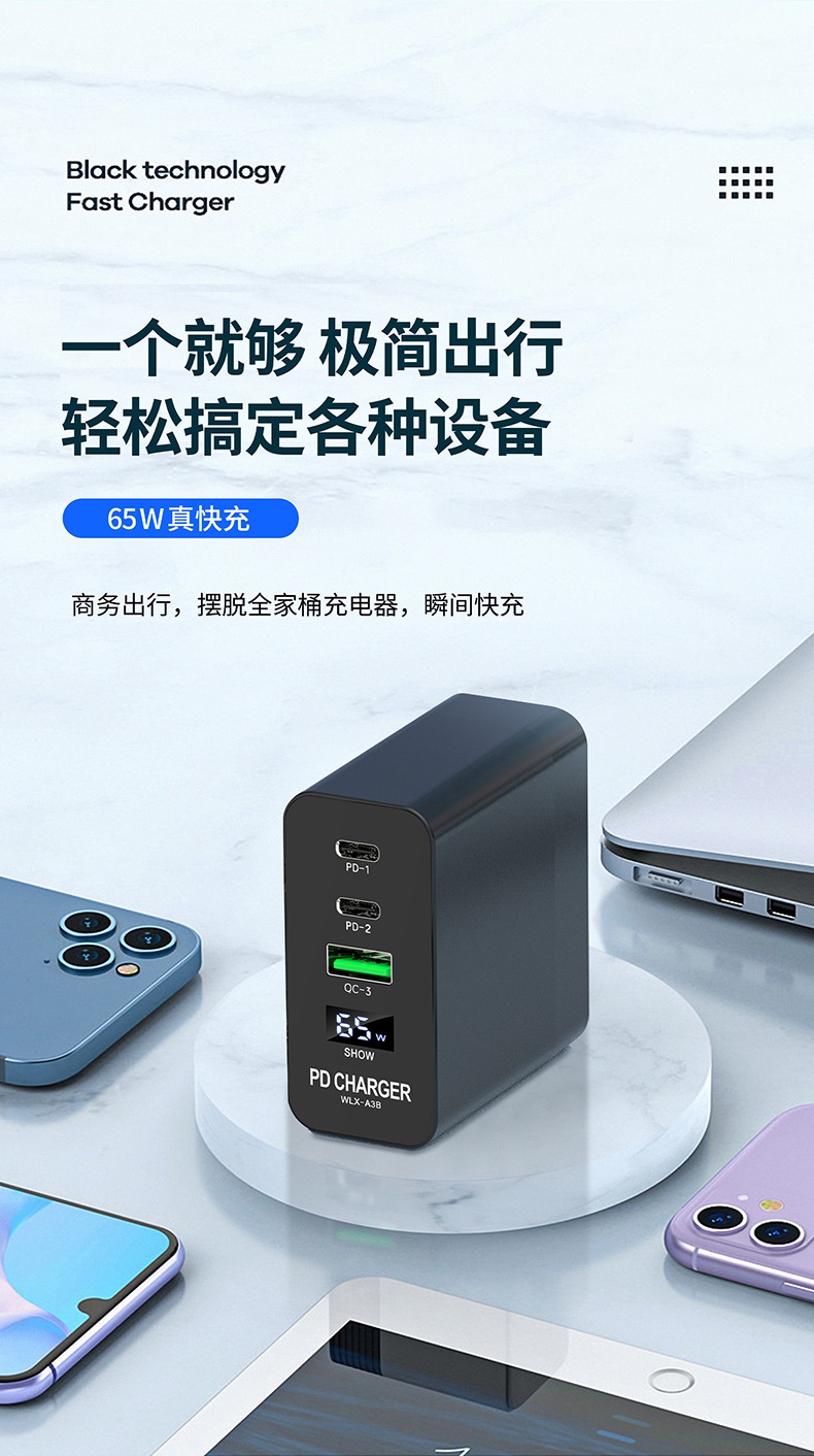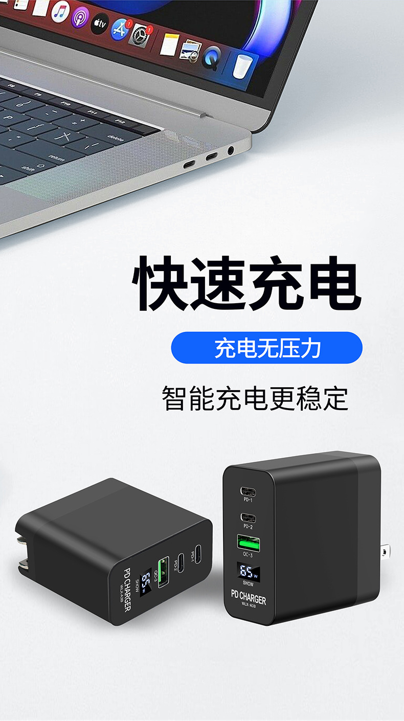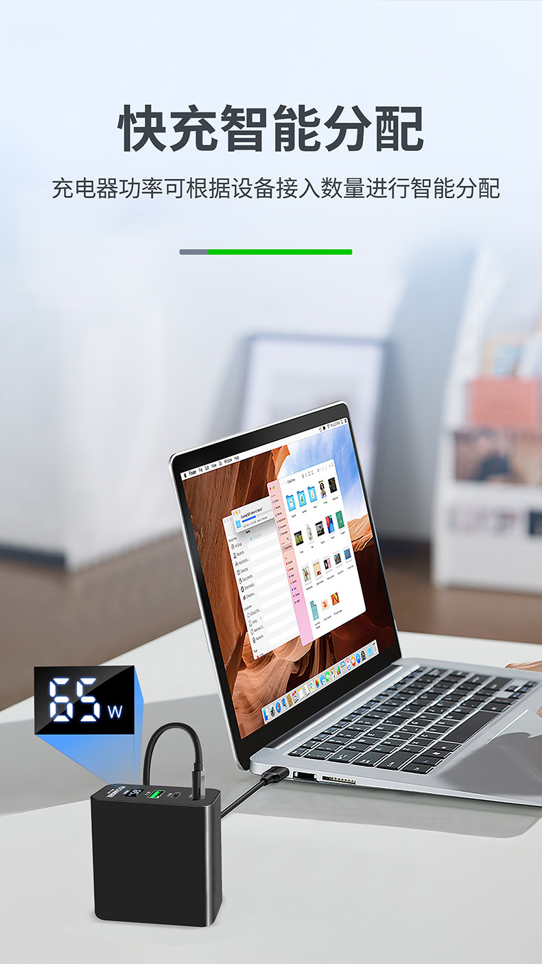 국경 간 갈륨 질화물 충전기 65W 디지털 디스플레이 지원 휴대 전화 태블릿 노트북 고전력 충전 헤드스토어 가기