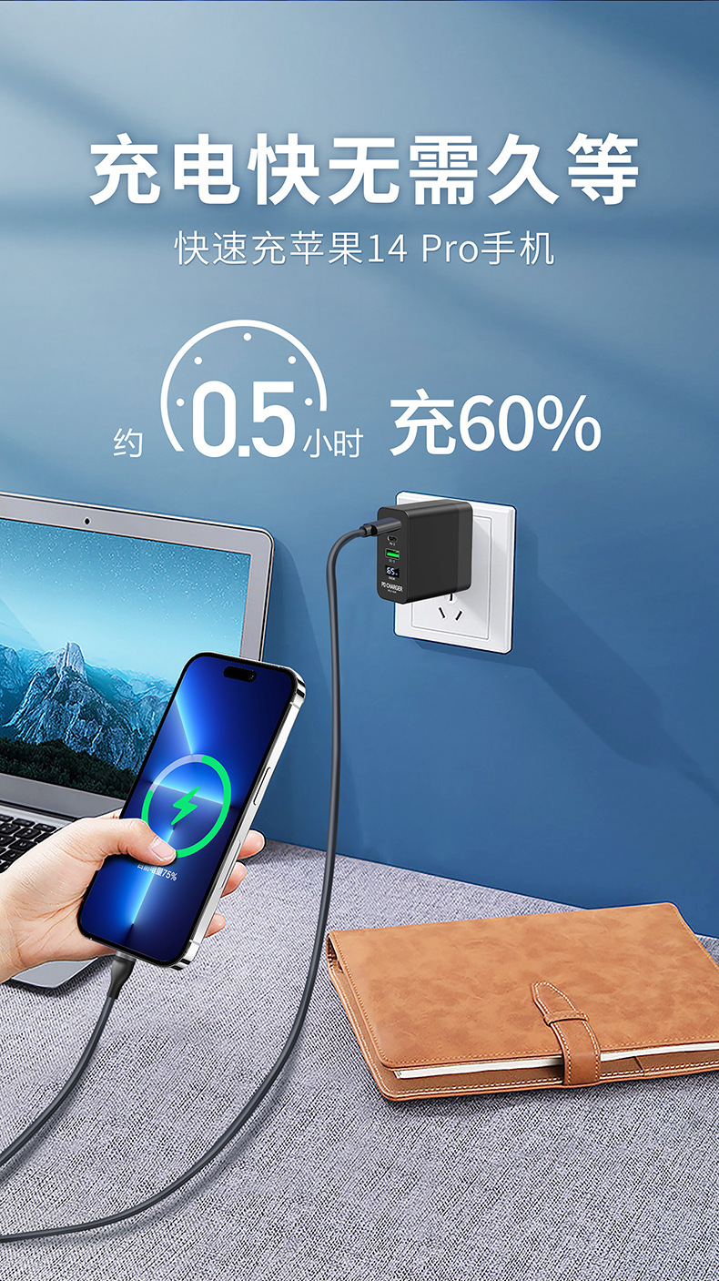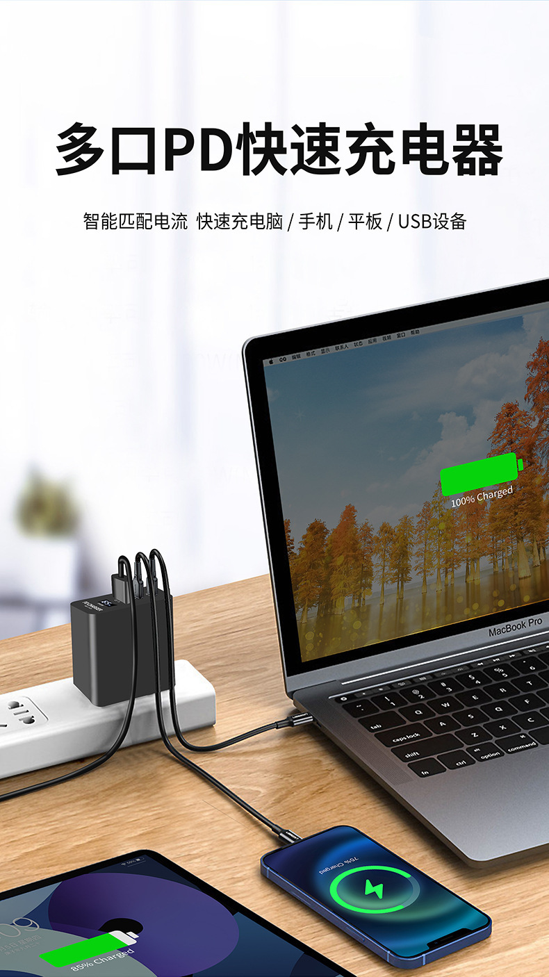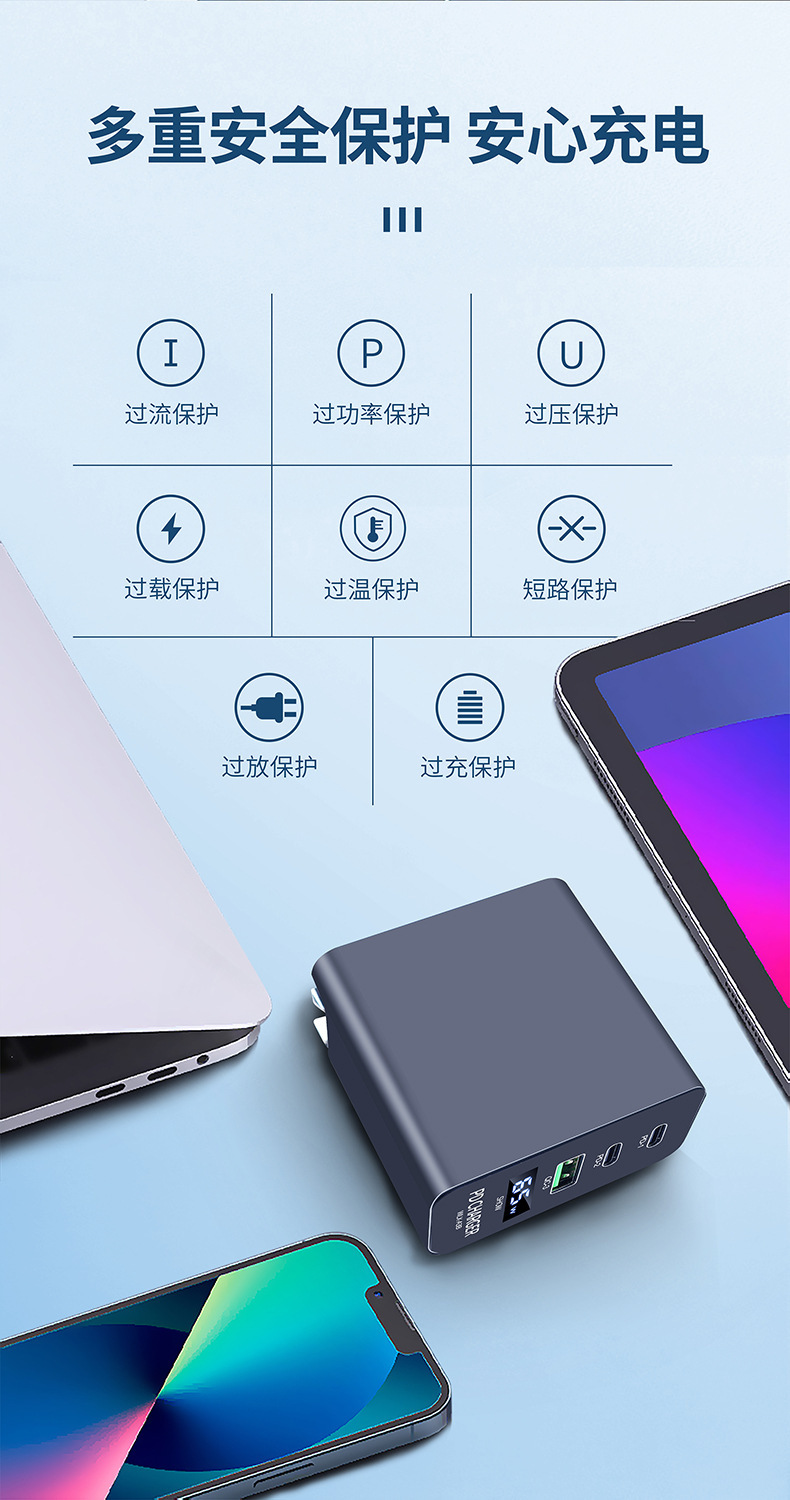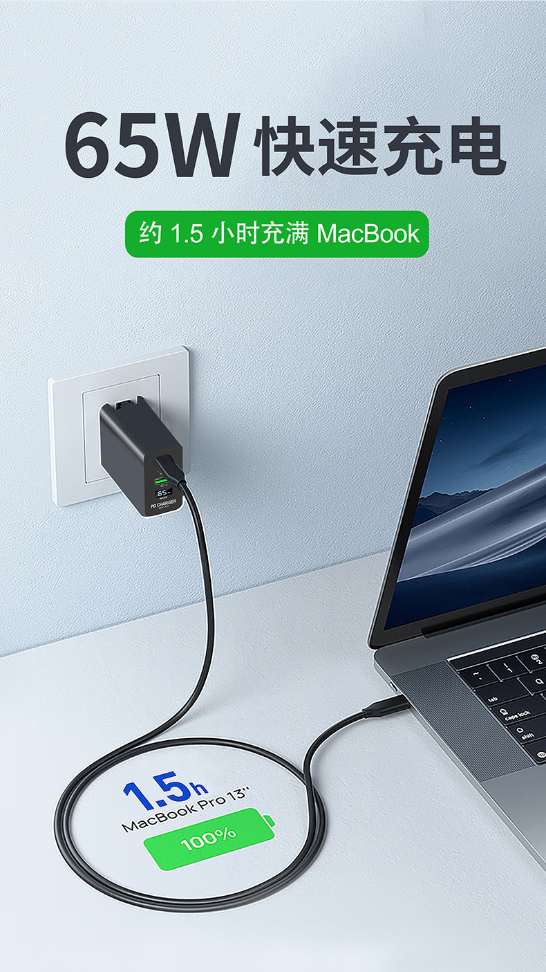국경 간 갈륨 질화물 충전기 65W 디지털 디스플레이 지원 휴대 전화 태블릿 노트북 고전력 충전 헤드스토어 가기