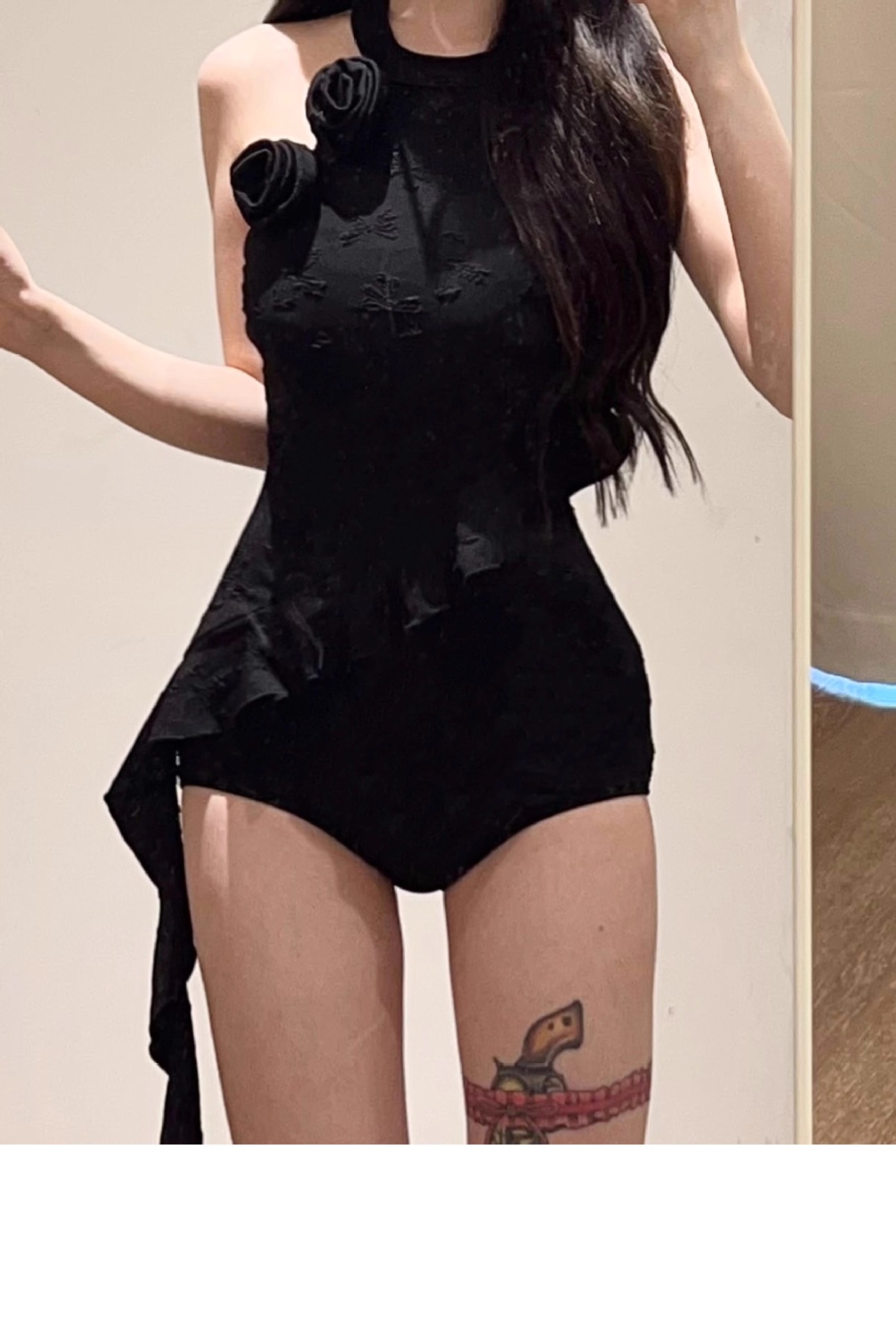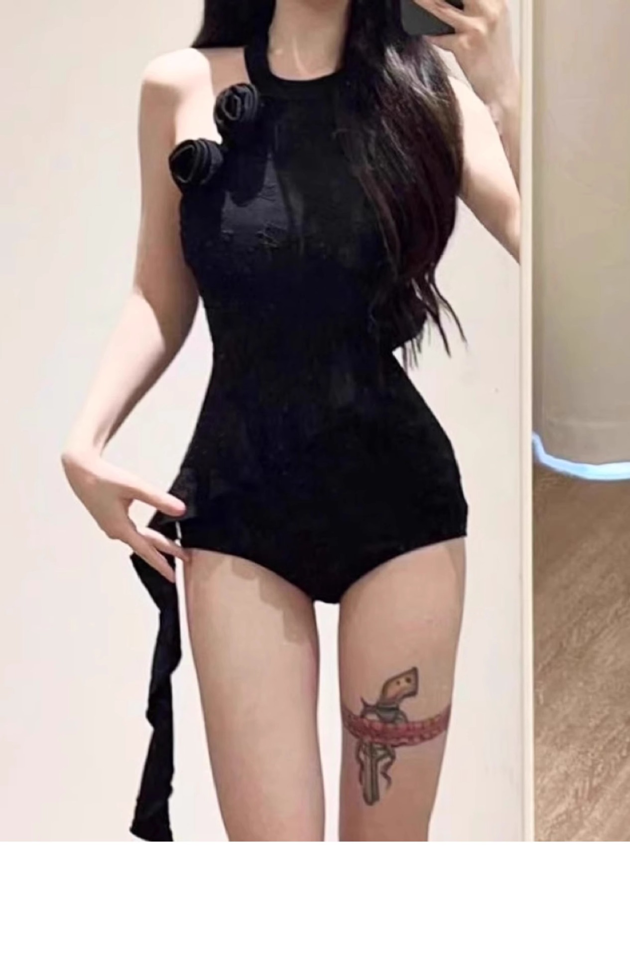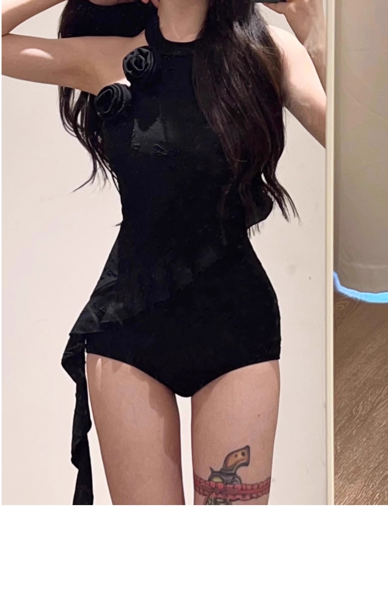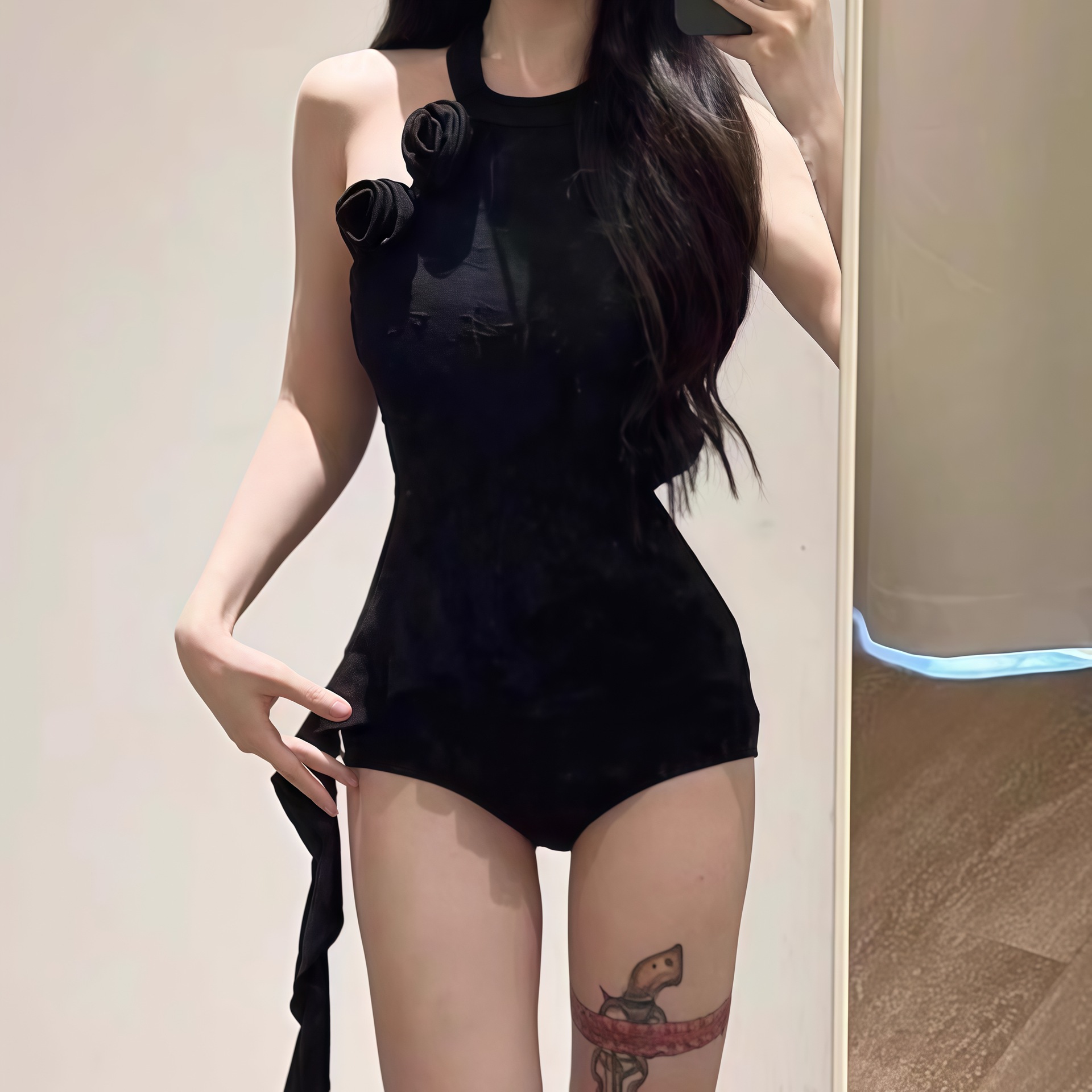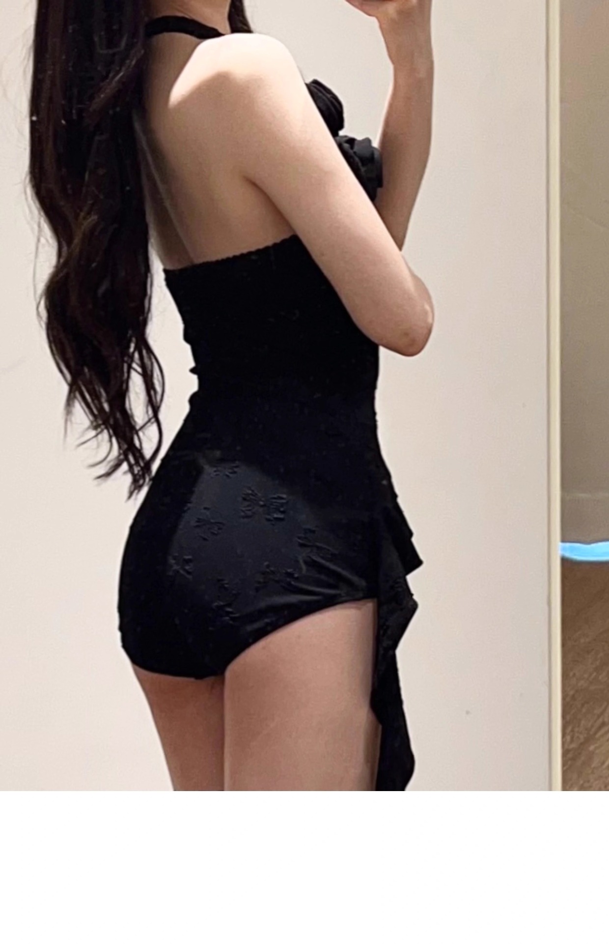 하이 엔드 여성 섹시 수영복 여성 2025 새로운 보수 슬림 배 커버링 레트로 블랙 온천 휴가