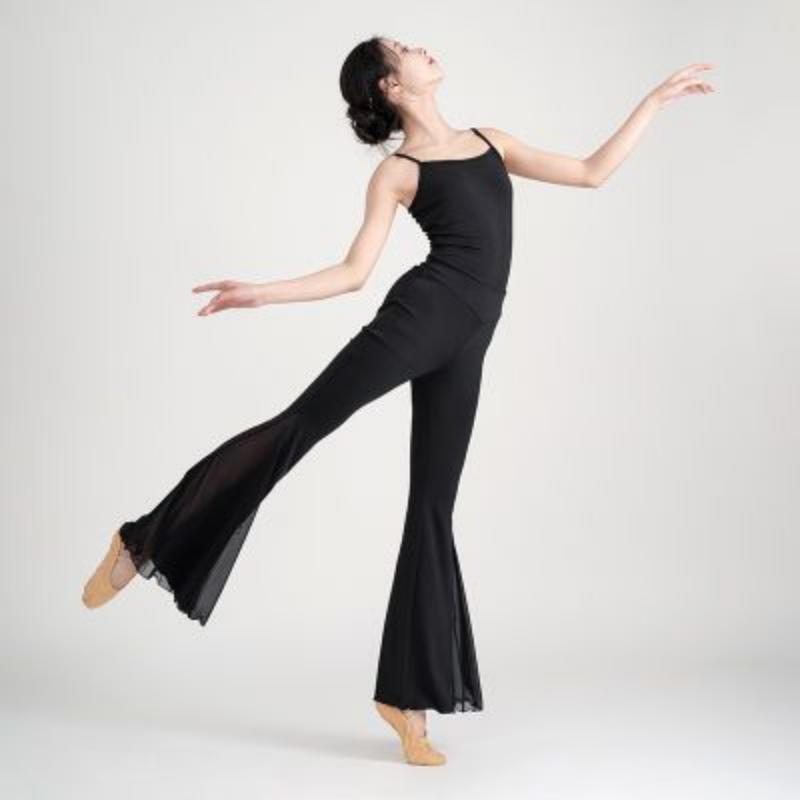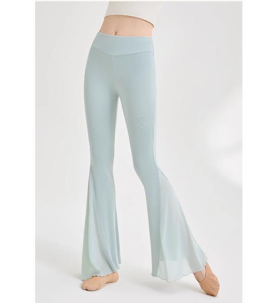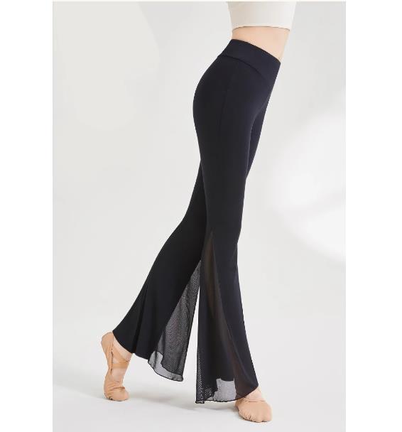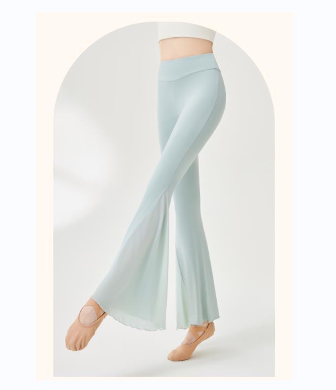 여름 새로운 경량 우아한 메쉬 헴 크로스 디자인 벨리 슬리밍 바지 클래식 댄스 요가 바지