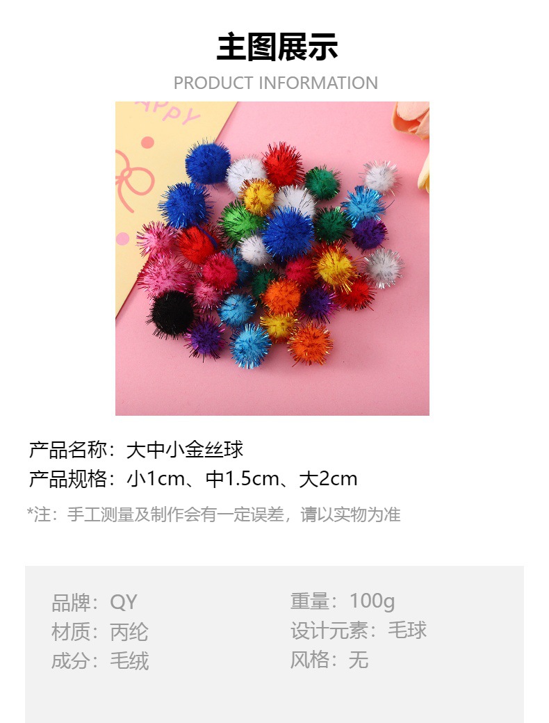 다양한 크기의 금사 볼 DIY 장식 소품, 털볼, 결혼식, 축제, 파티, 의류, 신발, 가방 액세서리, 다채로운 색상 도매스토어 가기