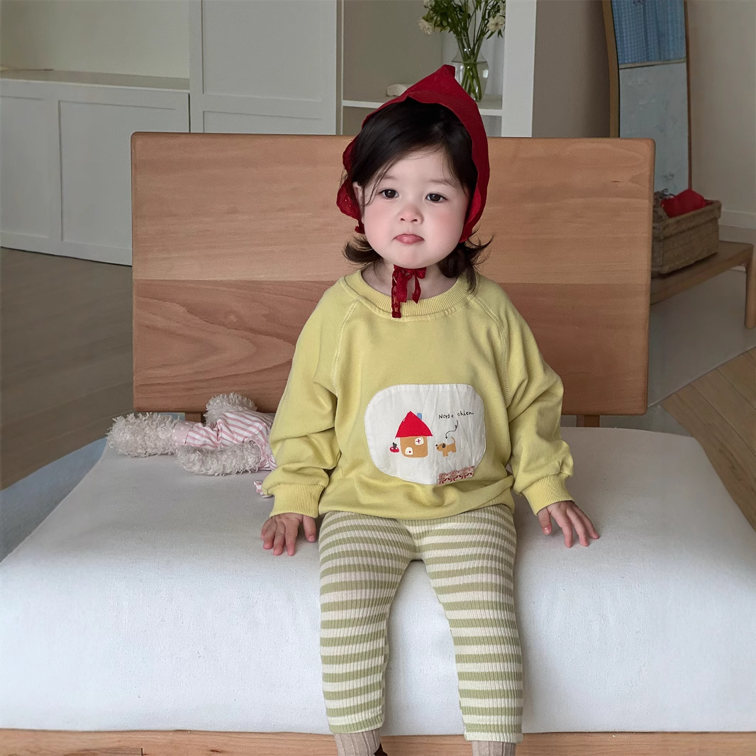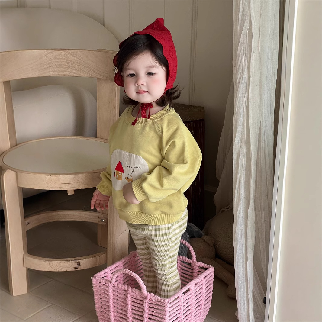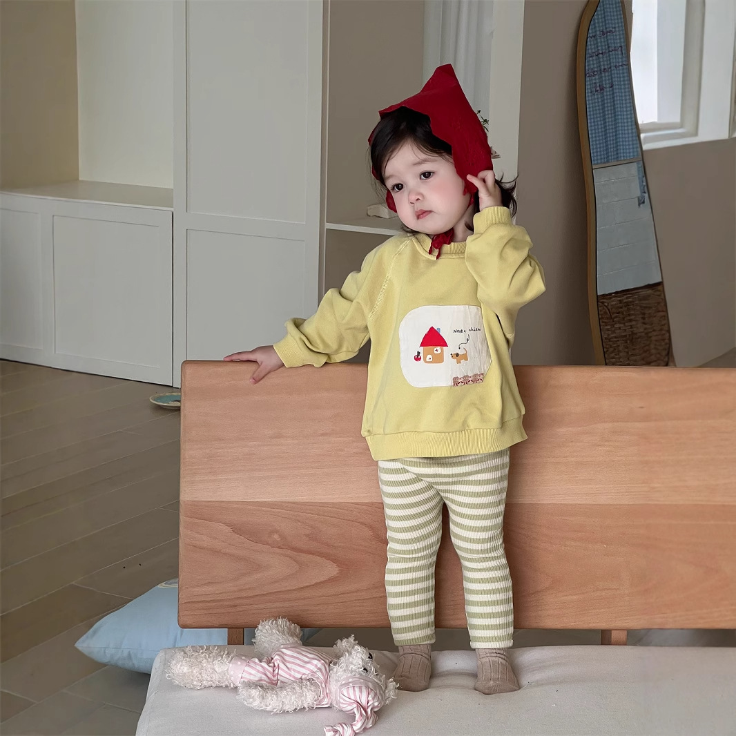 아동 가을 옷 2025 새로운 한국 스타일 아동 의류 소녀 패치 스웨트 셔츠 레깅스 정장 아기 가을 옷