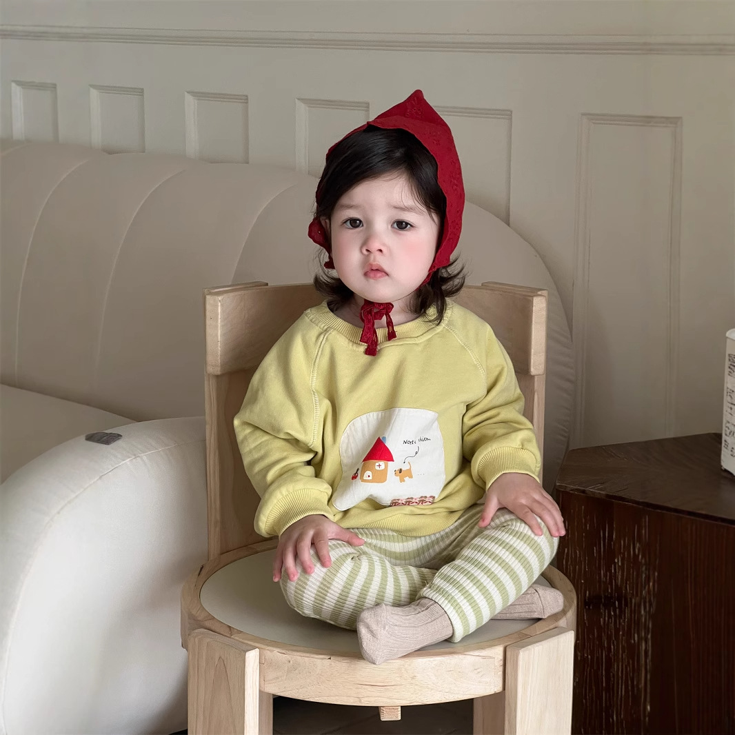 아동 가을 옷 2025 새로운 한국 스타일 아동 의류 소녀 패치 스웨트 셔츠 레깅스 정장 아기 가을 옷스토어 가기