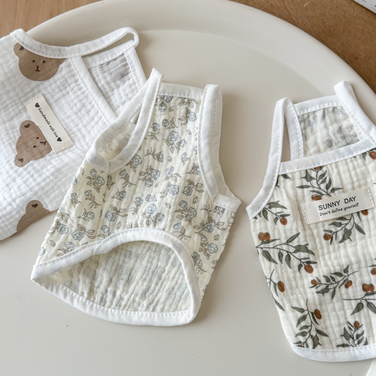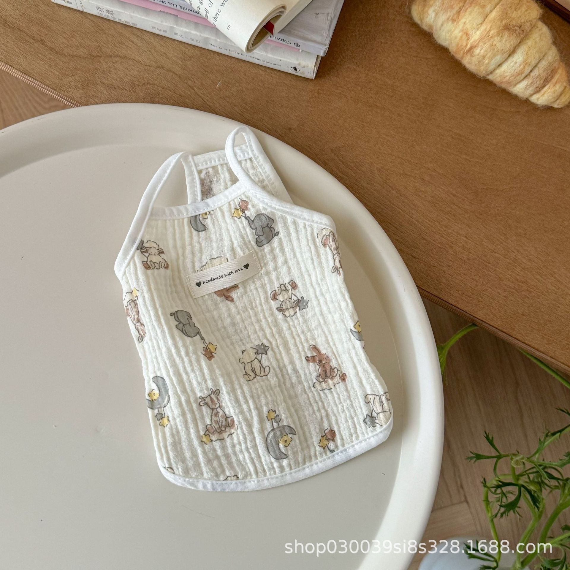 여름 면화 고양이 옷 민소매 카디건 거즈 귀여운 조끼 선 스크린 조끼 얇은 안티 헤어
