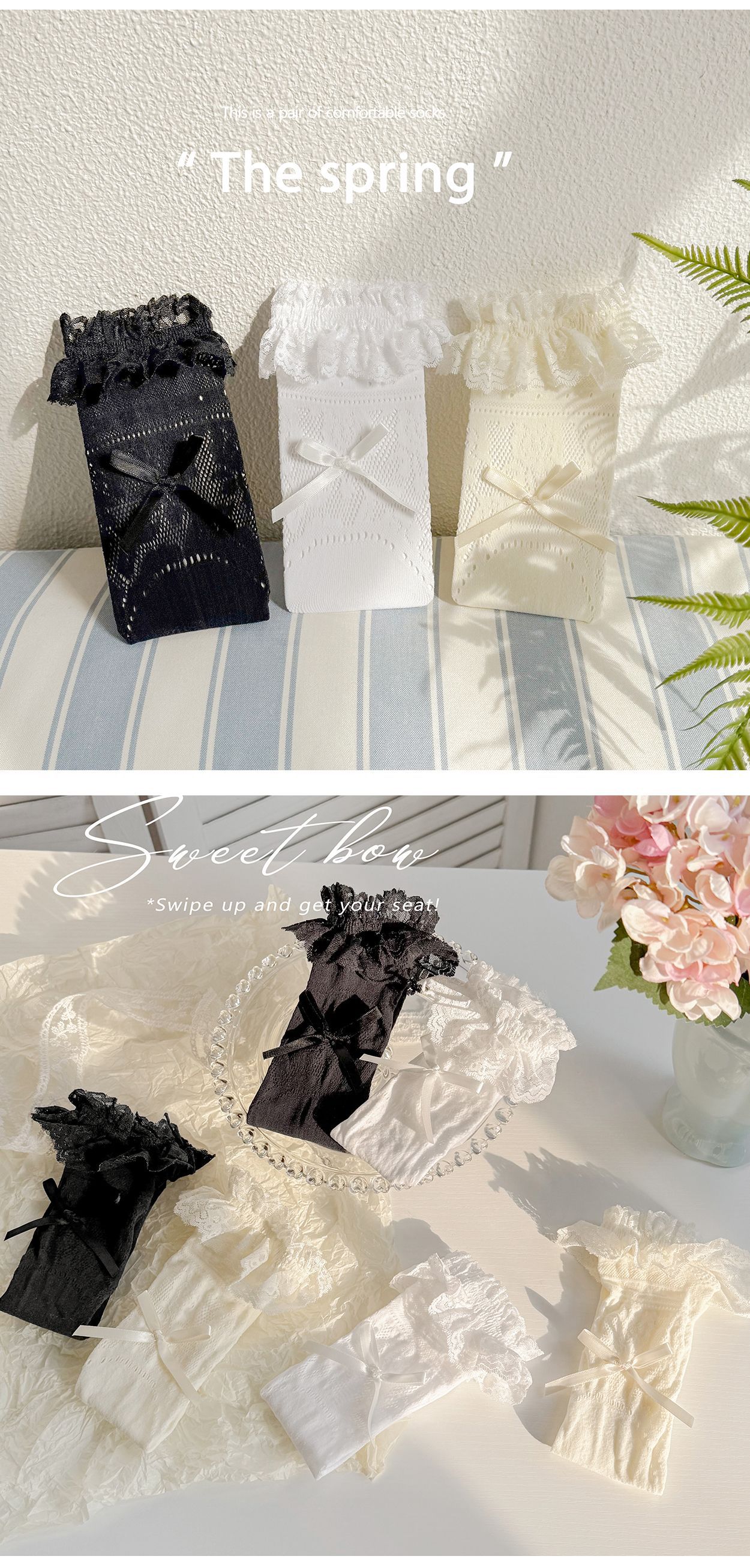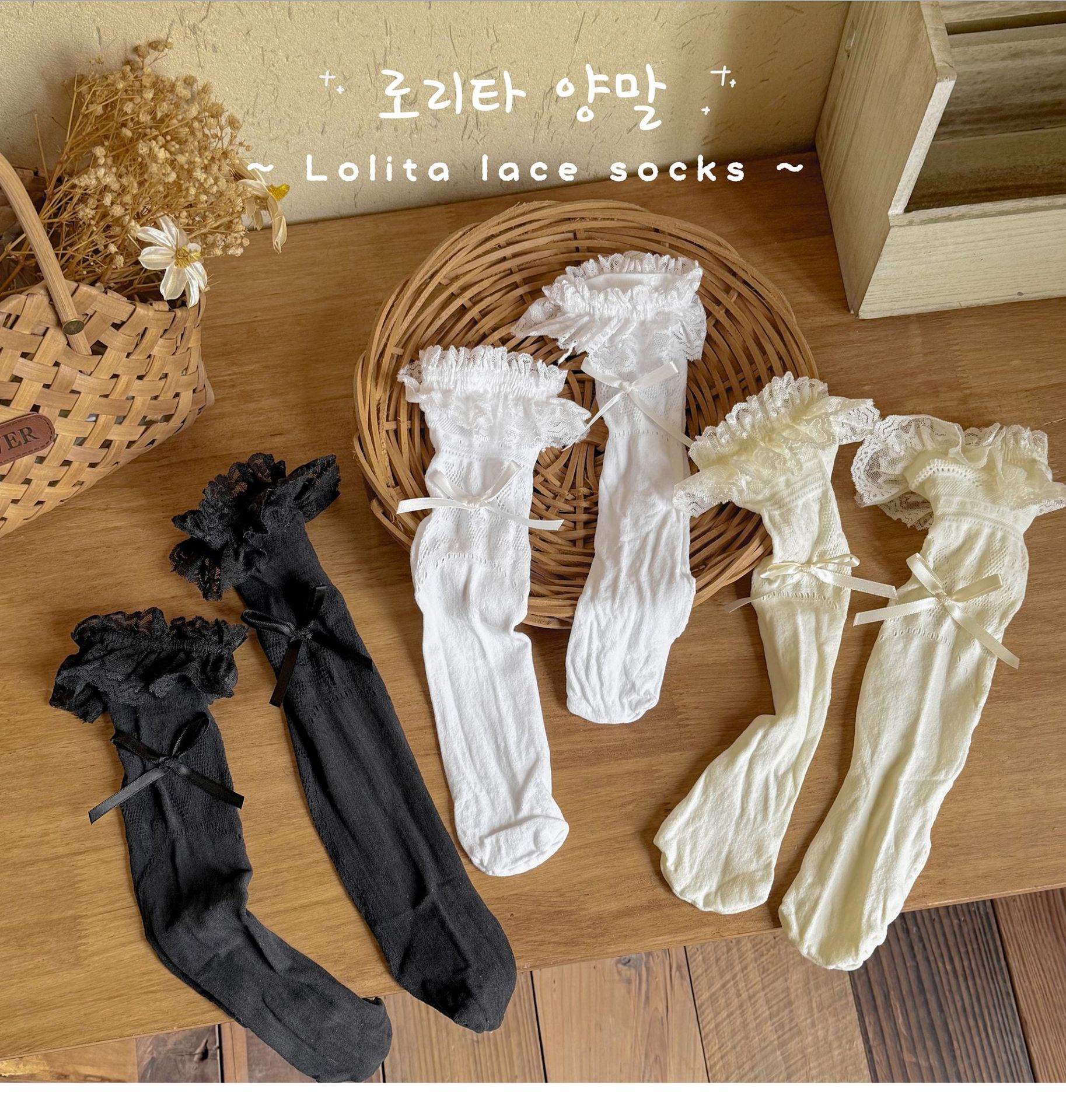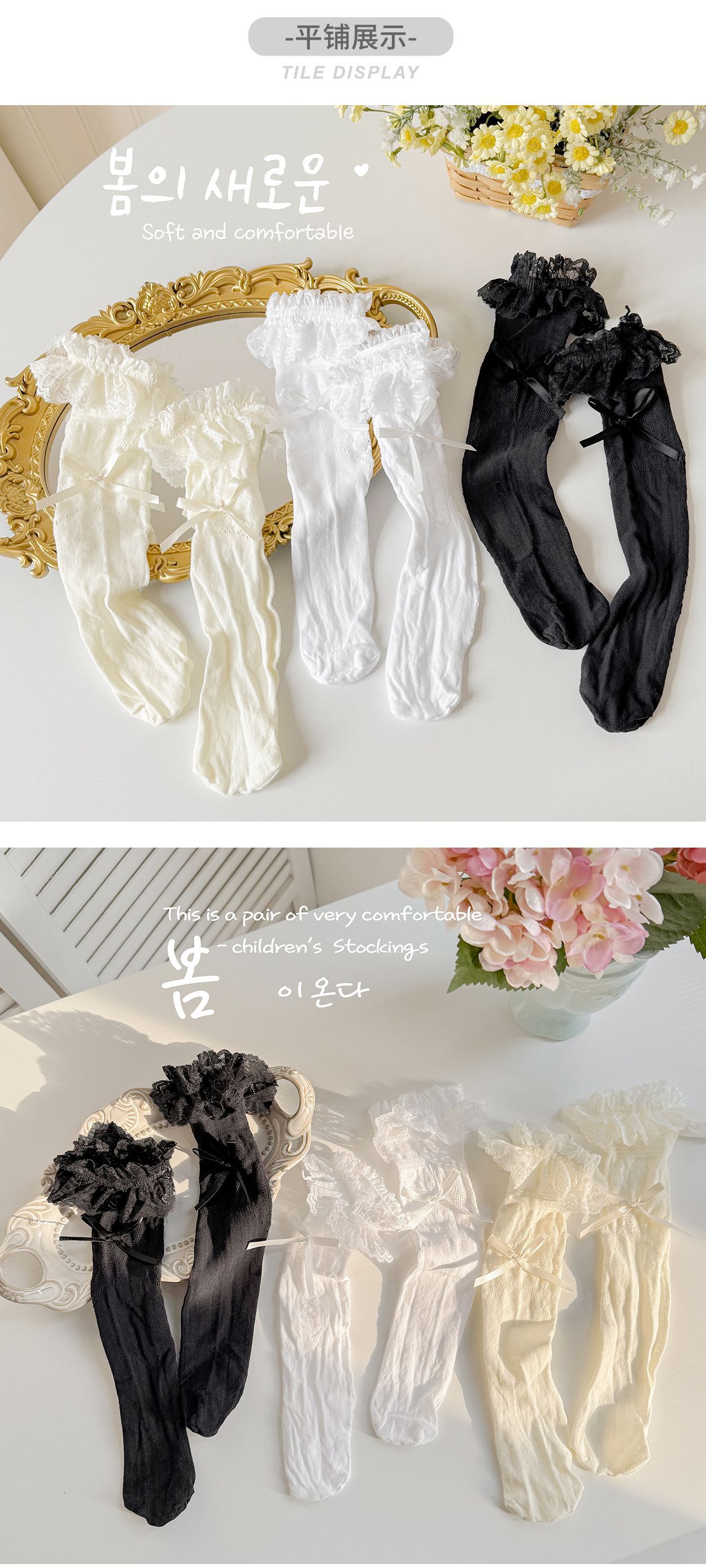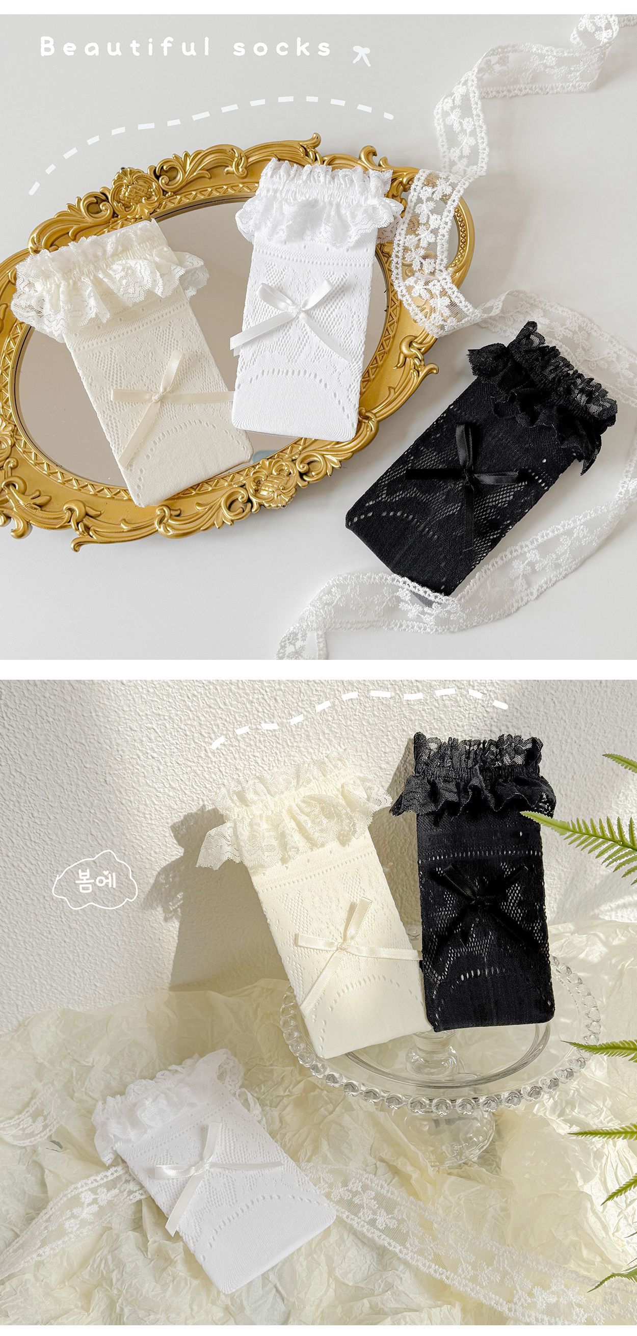 여자 로리타 레이스 미드 양말 보우 레이스 메쉬 한국 스타일 발레 스타일 아기 공주 트렌디 스타킹스토어 가기