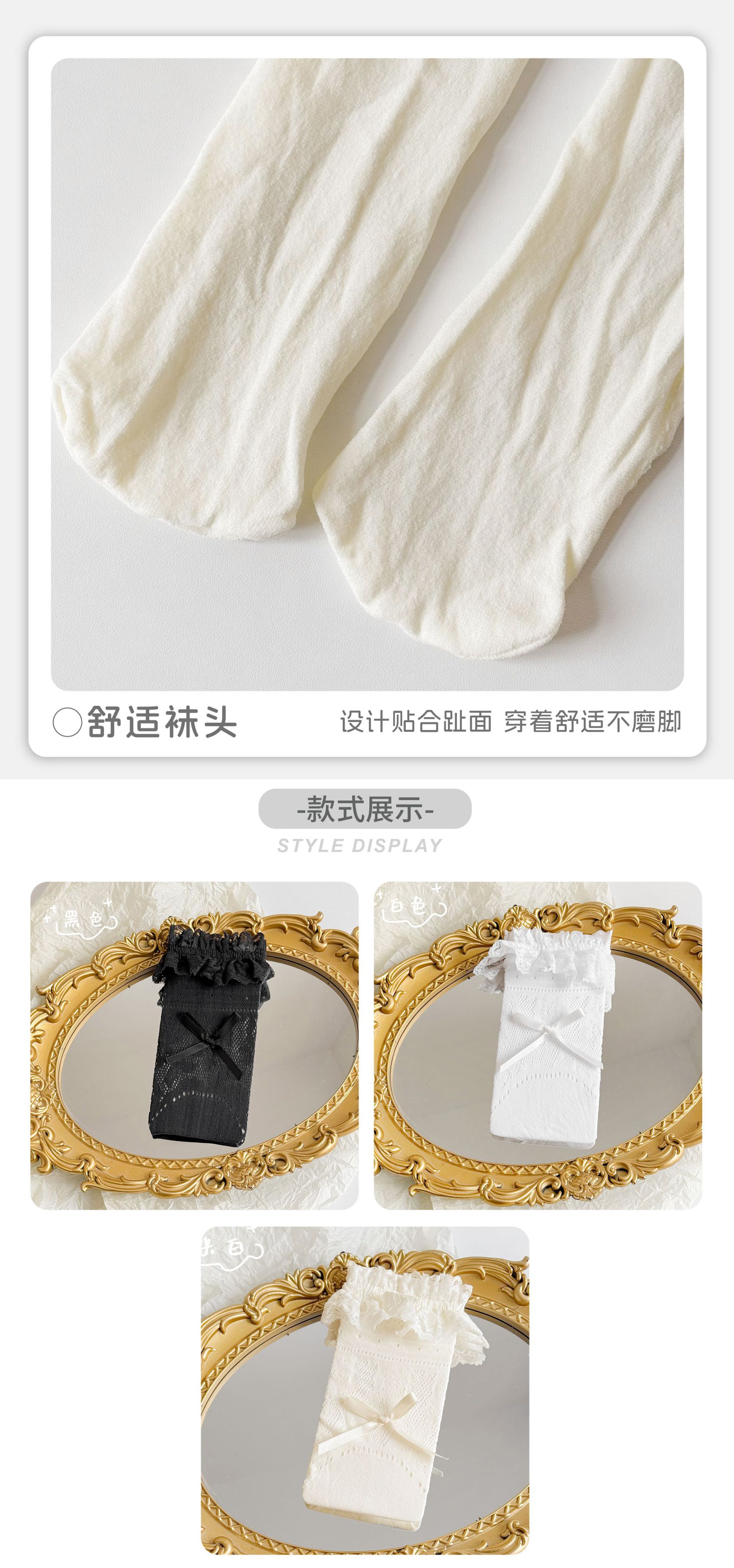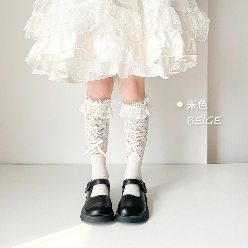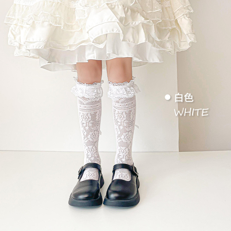 여자 로리타 레이스 미드 양말 보우 레이스 메쉬 한국 스타일 발레 스타일 아기 공주 트렌디 스타킹