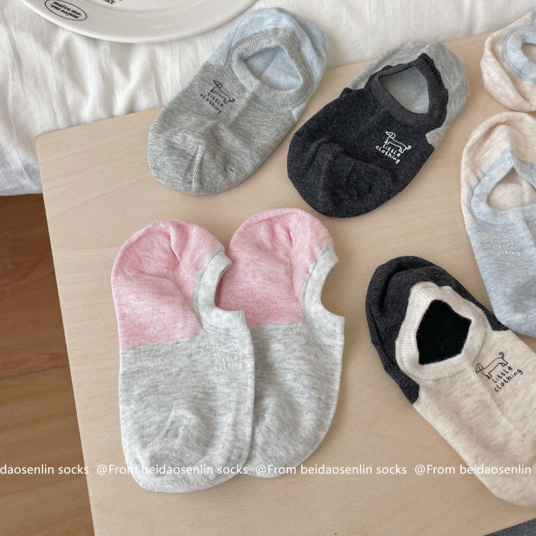 2025 봄과 여름 새로운 여성 양말 캔디 컬러 스마일리 자수 코튼 보이지 않는 양말 입문 얕은 로우 사이드 보트 양말