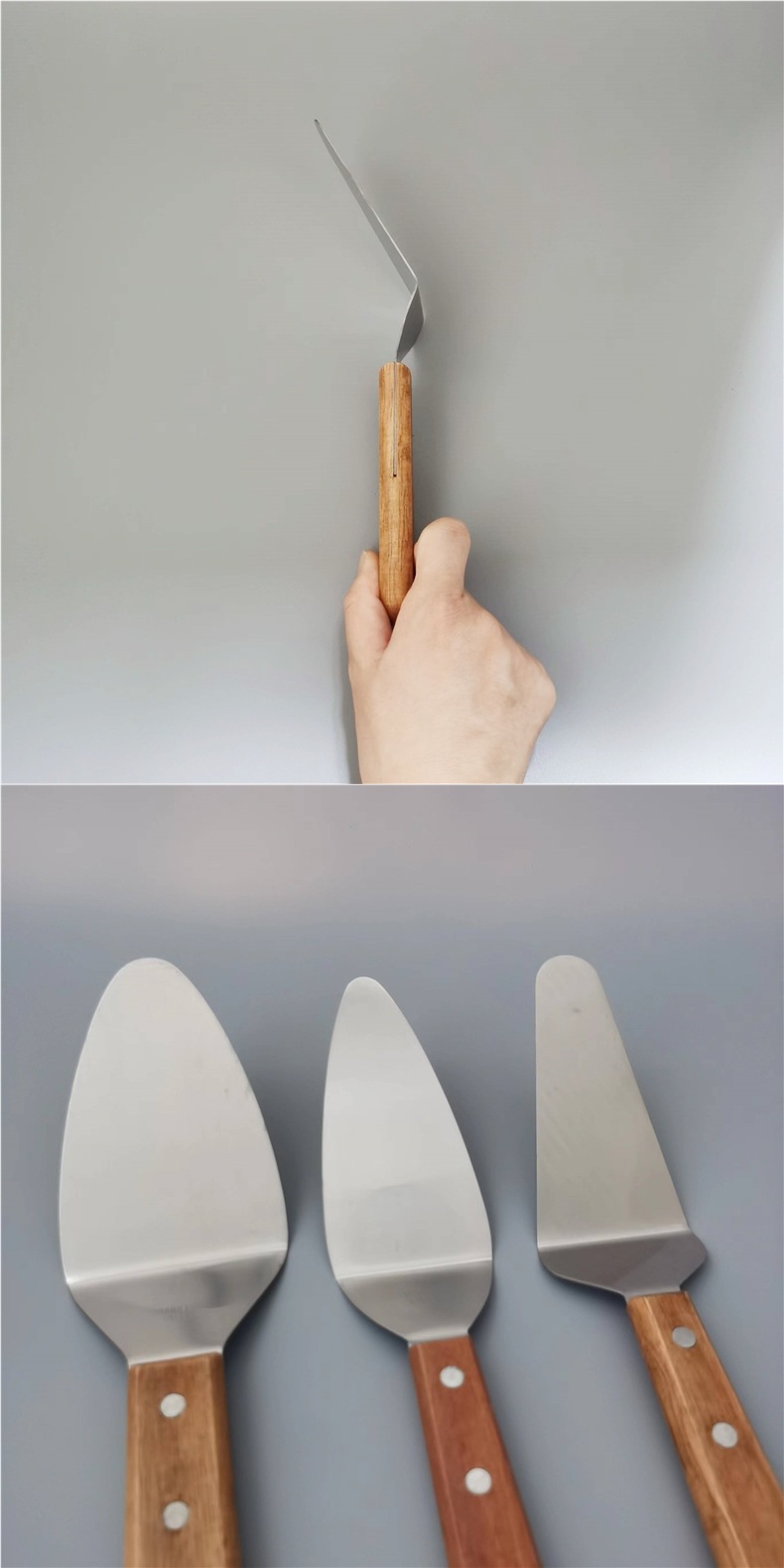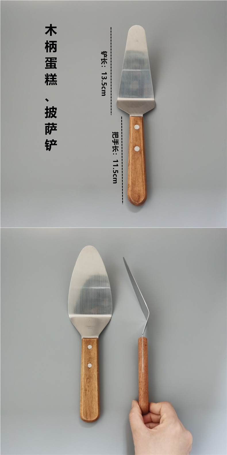 • 나무 손잡이가 달린 케이크 피자 주걱