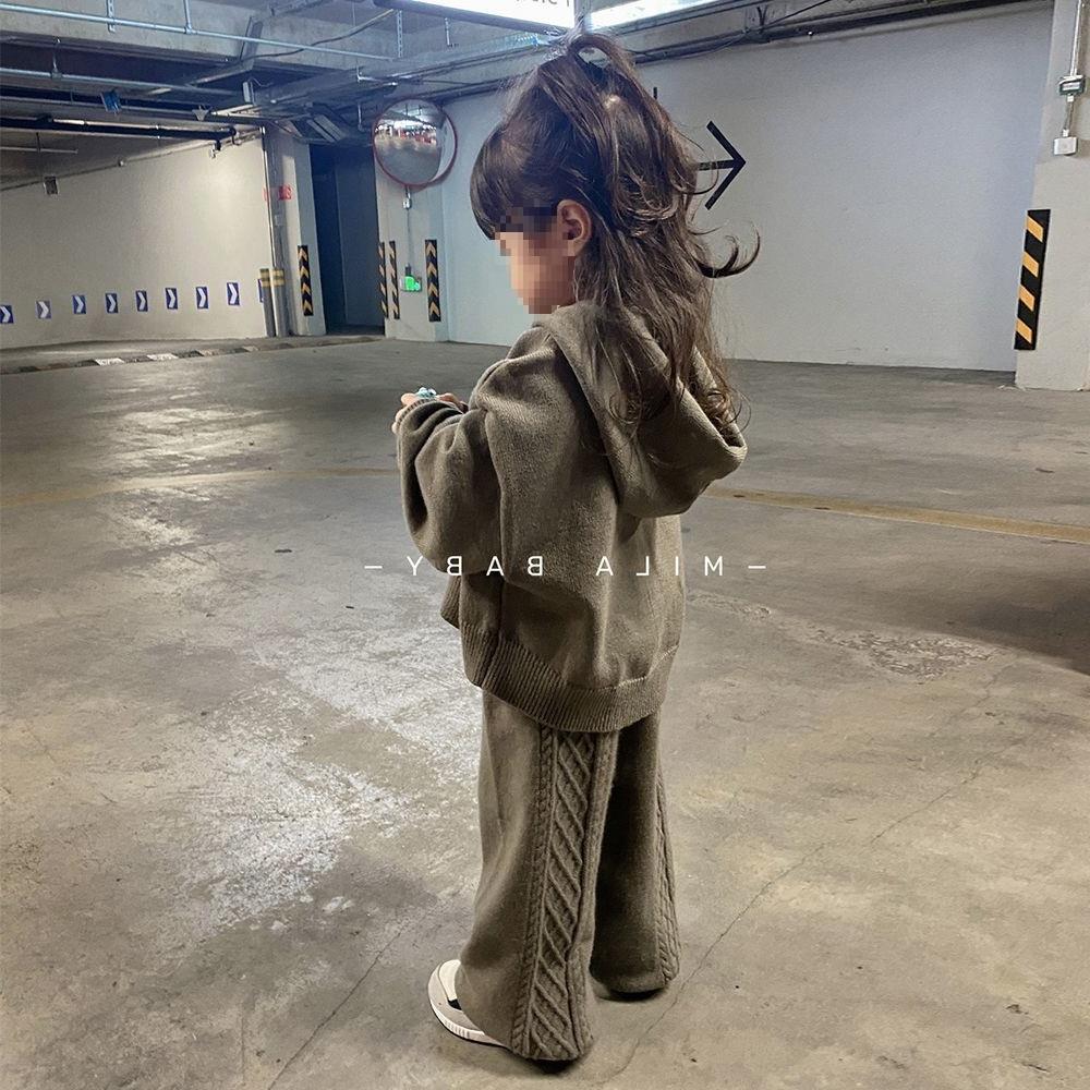 한국 아동복 가을 신작 니트 후드 스웨터 바지 아동 패션 양복 투피스 세트스토어 가기