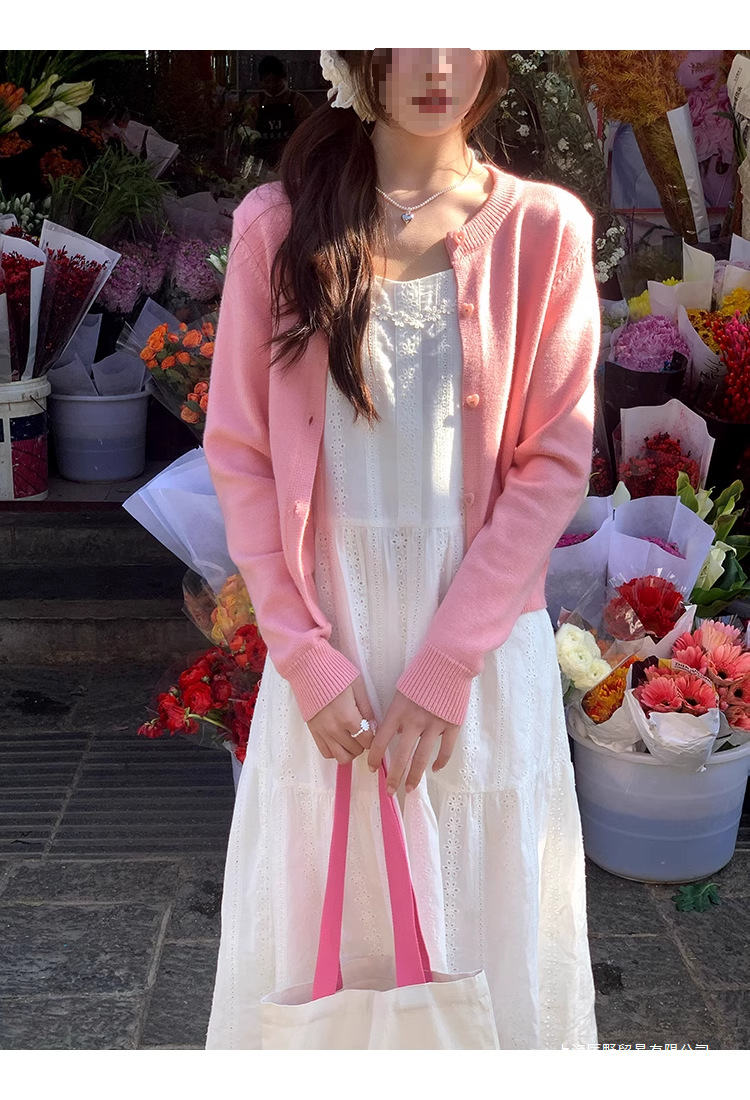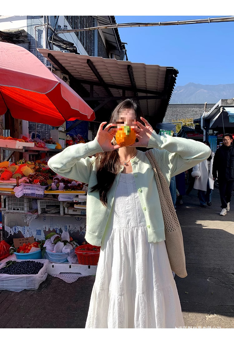 신선한 멜론 그린 긴팔 니치 니트 카디건 여자 2025 년 이른 봄 새로운 우아한 올 매치 라운드 넥 탑스토어 가기