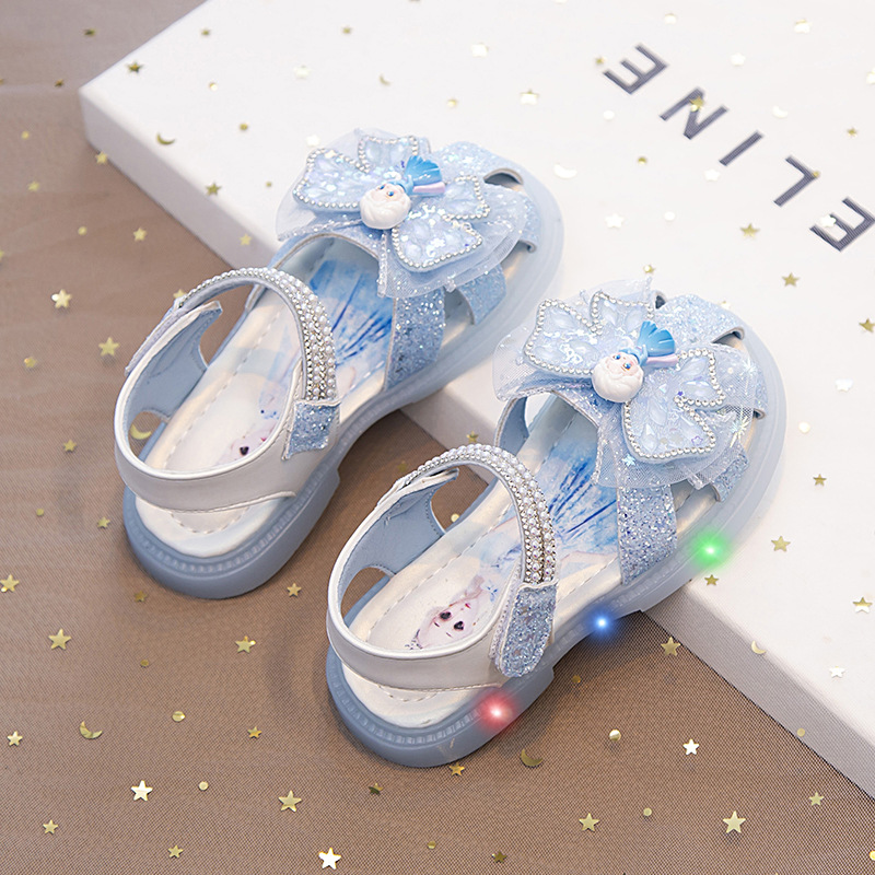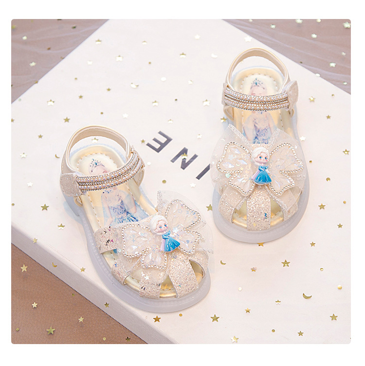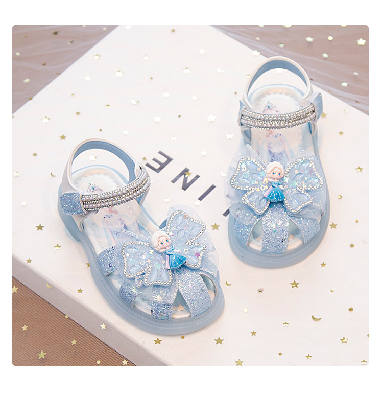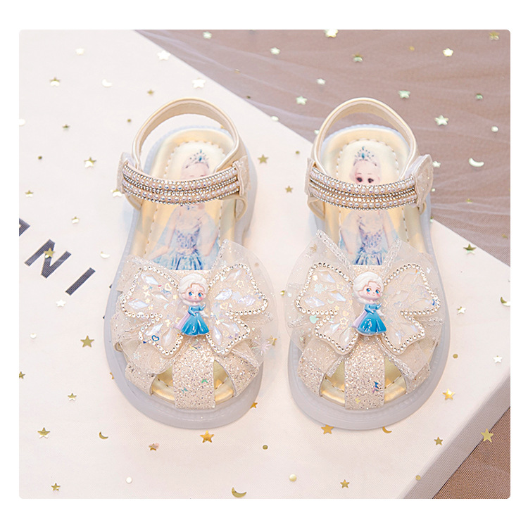 여자 아이샤 공주 신발 여름 바오터우 샌들 2025 새로운 중소 어린이 아기 소녀 크리스탈 신발 소프트 단독 조명스토어 가기
