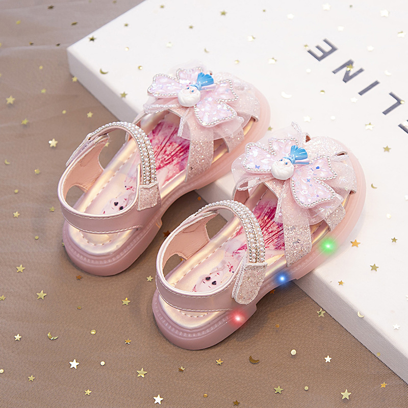 여자 아이샤 공주 신발 여름 바오터우 샌들 2025 새로운 중소 어린이 아기 소녀 크리스탈 신발 소프트 단독 조명